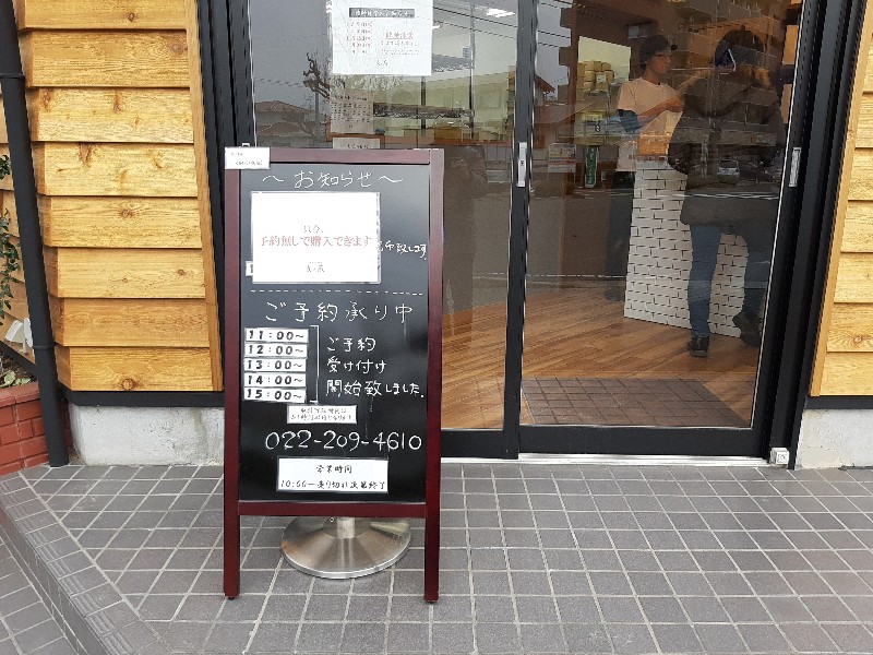開店当初は、朝10:00に並んで、売り切れの場合は、整理券を貰って焼き上がる時間に行くという方法でしたが、現在は、10:00オープン時の予約は行っていないとのことです(並んだ人優先)が、11:00以降は電話での予約が可能とのことです。これは当日でも、日にちを指定しての予約も可能とのことでした。