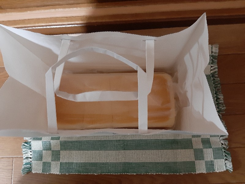 お目当ての『高級食パン』2斤を購入しました。焼きたてでほかほかですね。甘い香りがして美味しいそうです。値段は2斤で800円+税です。 他の高級食パン店と同じですね。