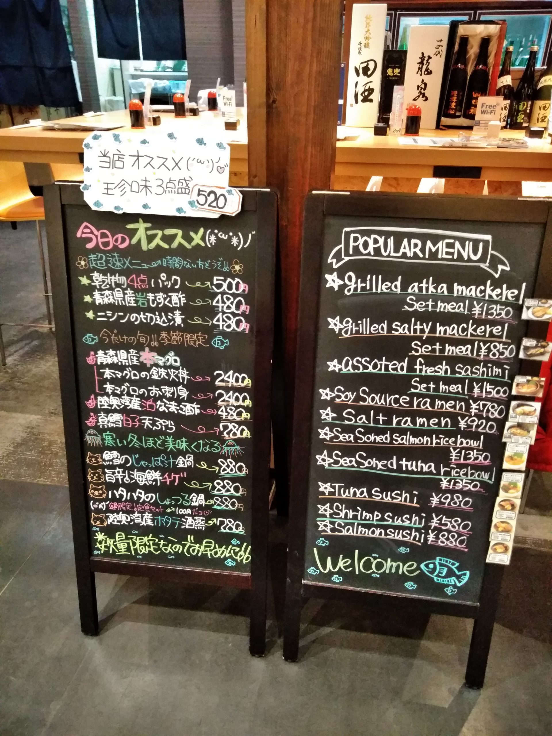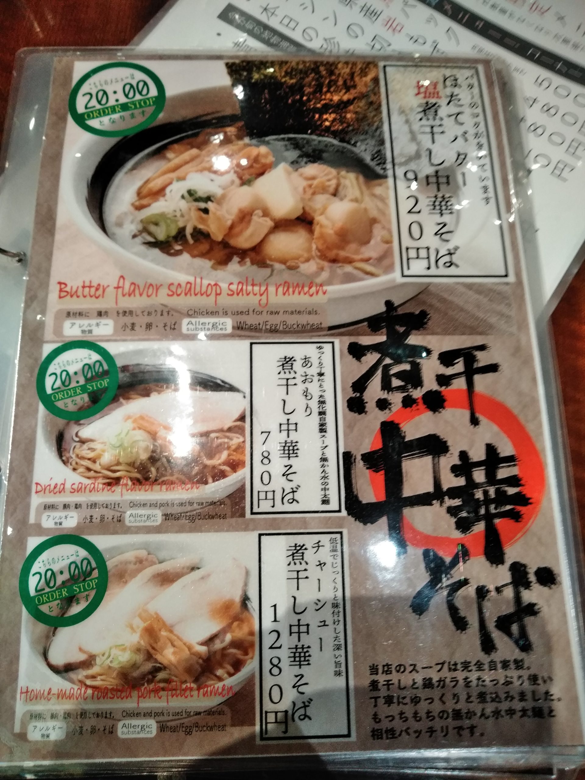 海鮮メインのお店でしたが、最近「煮干し中華そば」も始めたようです。スープは完全自家製というこだわりのようです。人気のようで注文しているお客さんも多かったですね。