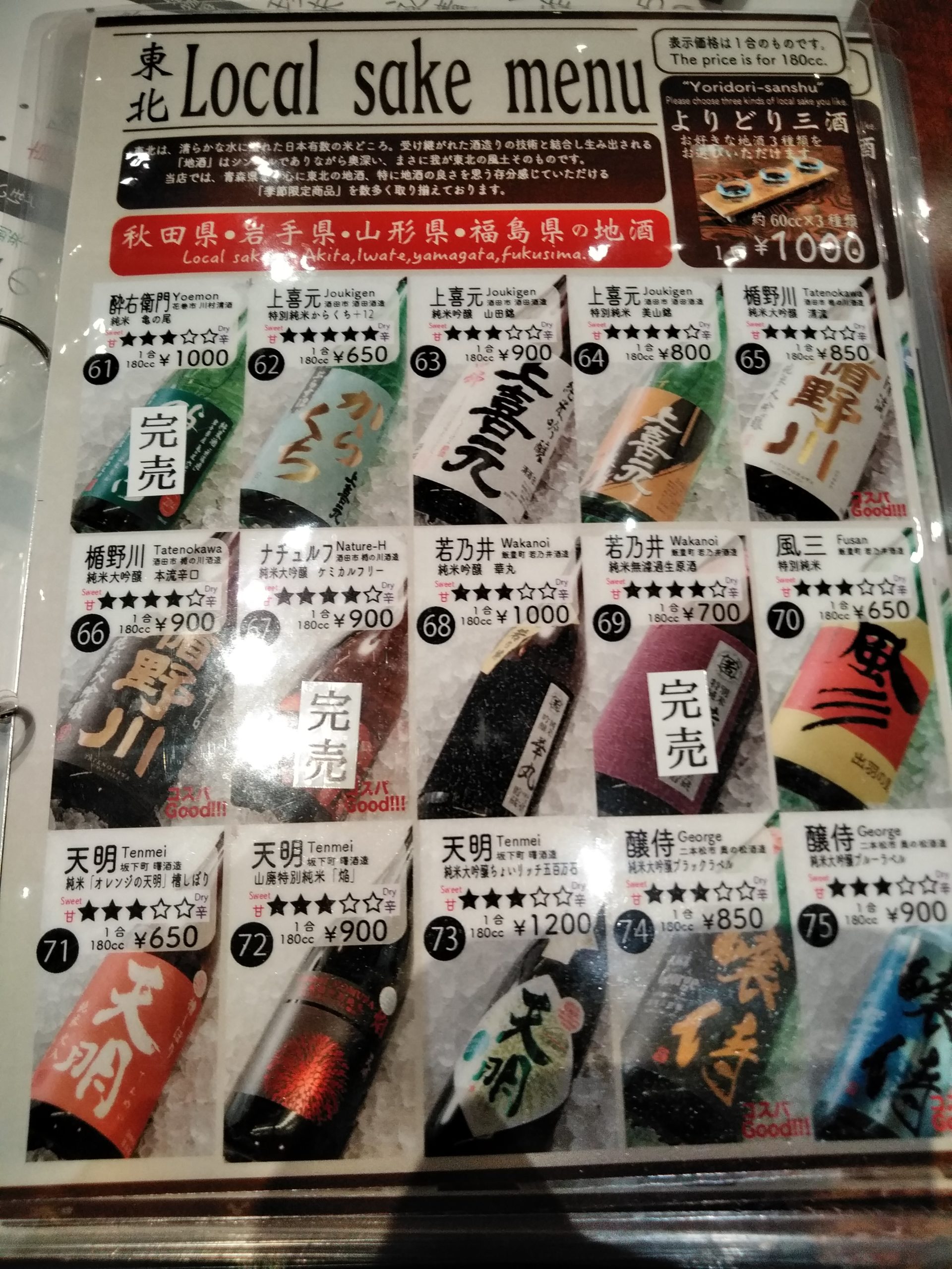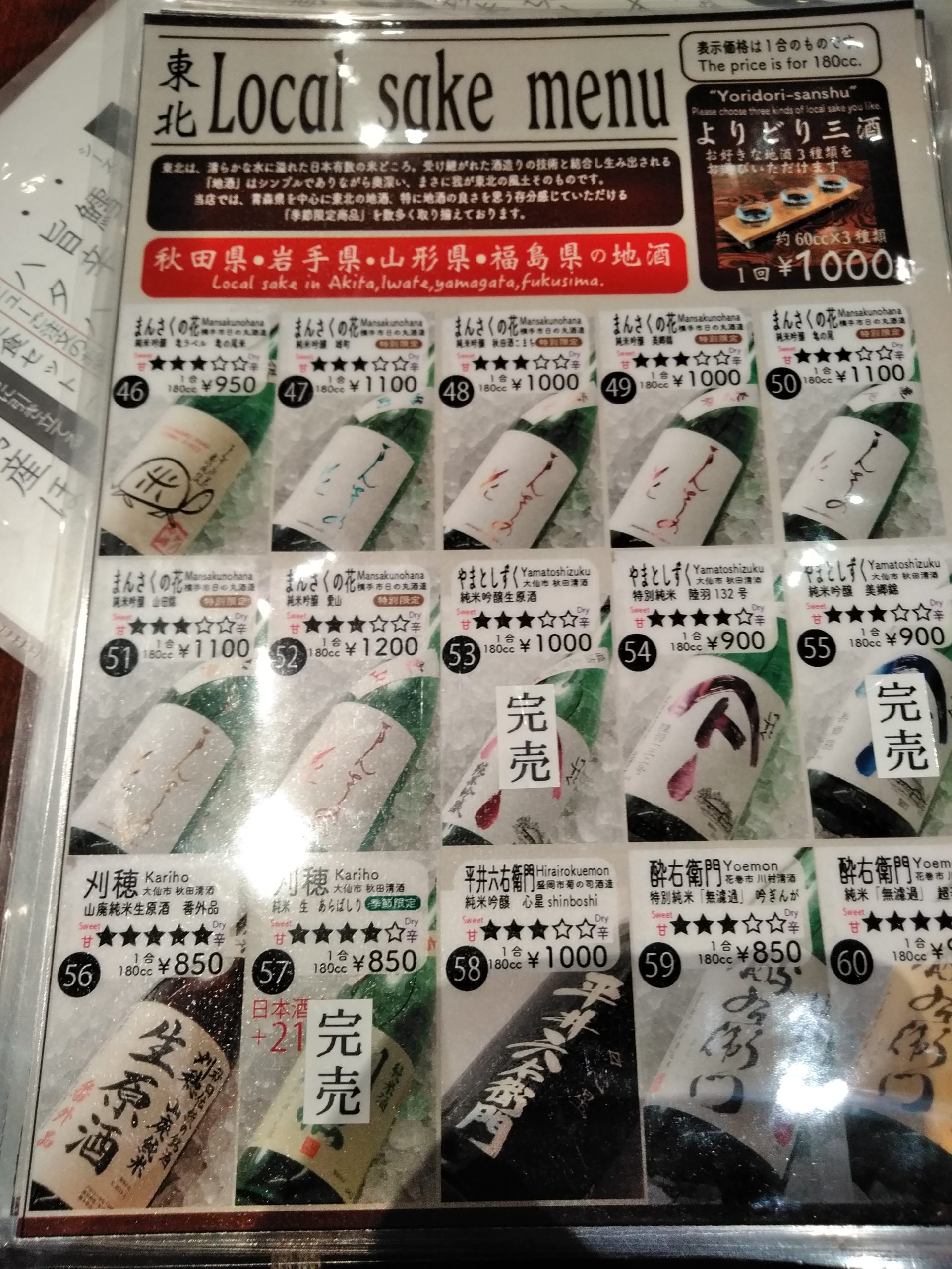 東北の他県の地酒メニューもありました。