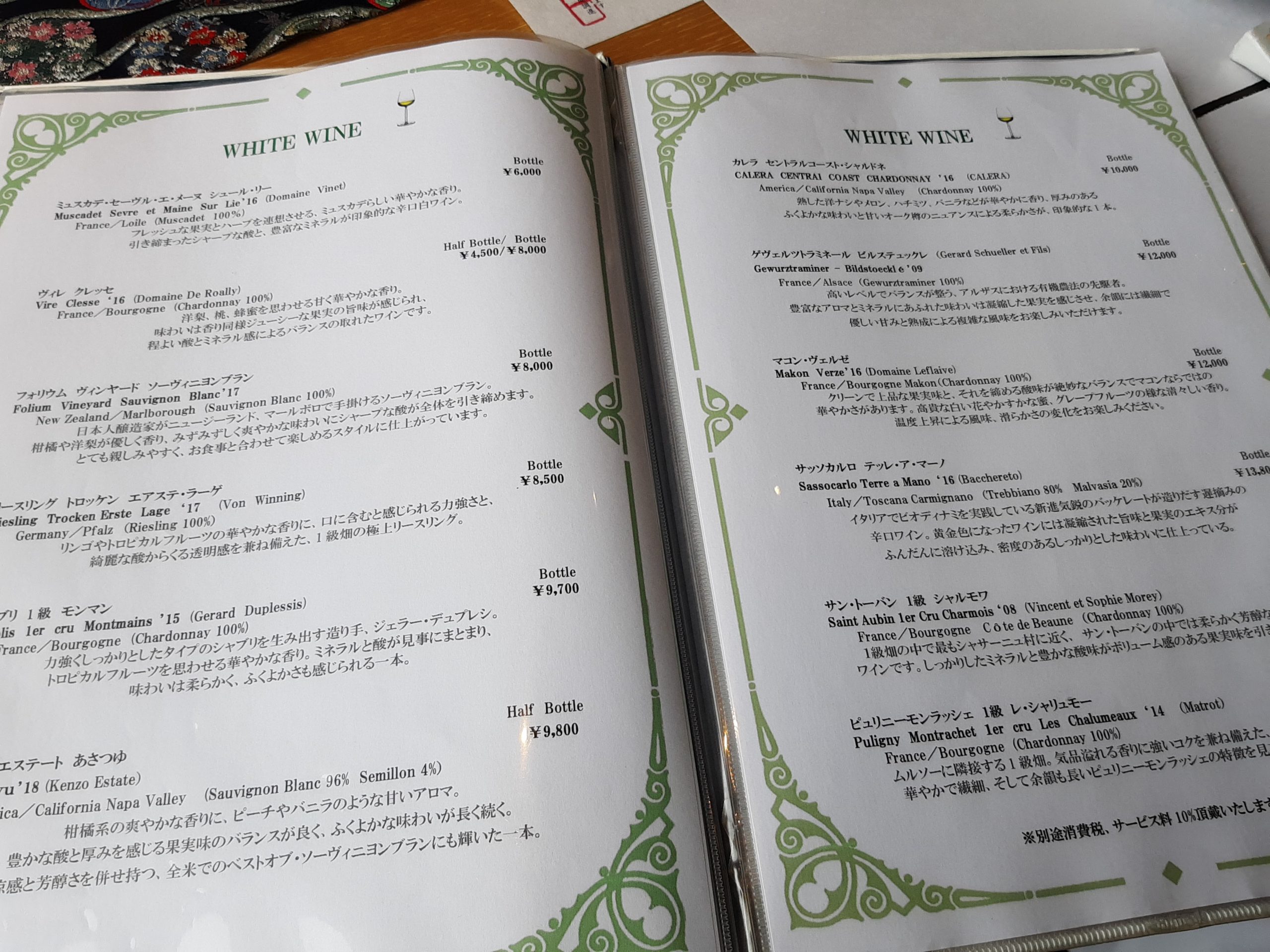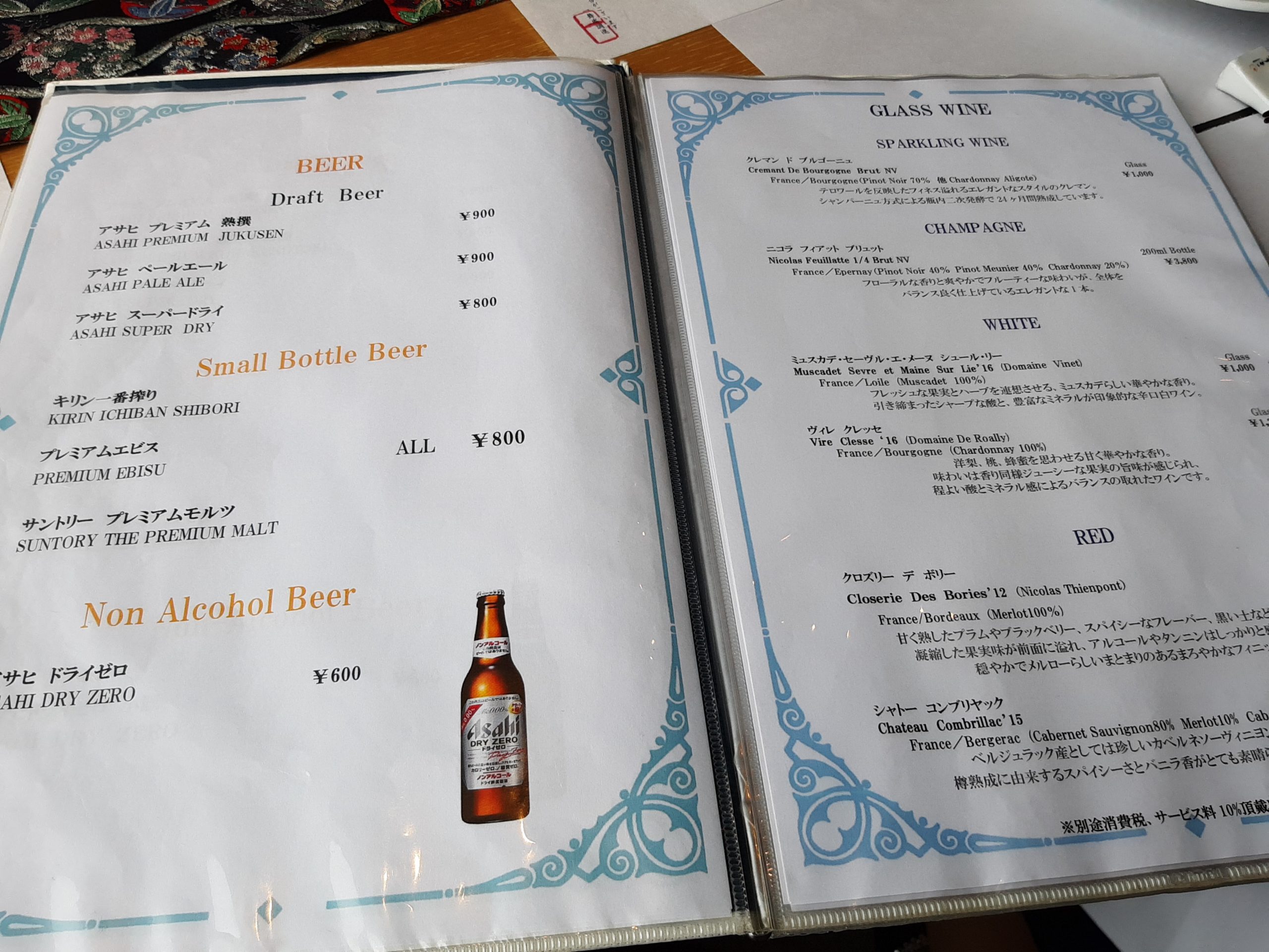 今回はコースなので、メニューで見るのは、ドリンクだけですね。高級レストランは飲み物はかなり高いです。ソフトドリンク600円、アルコール飲料900円以上。