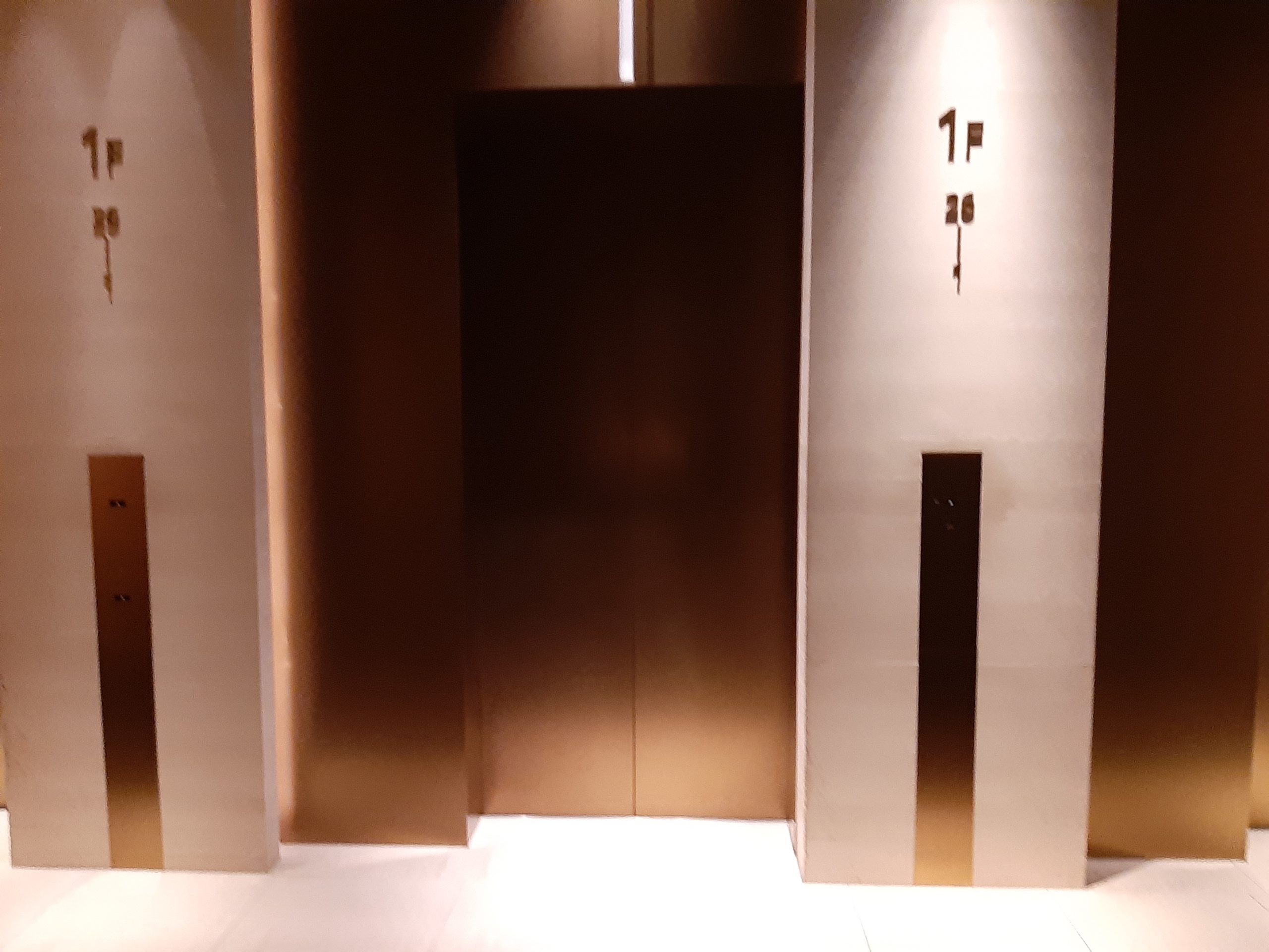 1F~は37F迄は1台のエレベータでは、行けません。一旦26F迄行き、乗り換えて37F迄行きます。