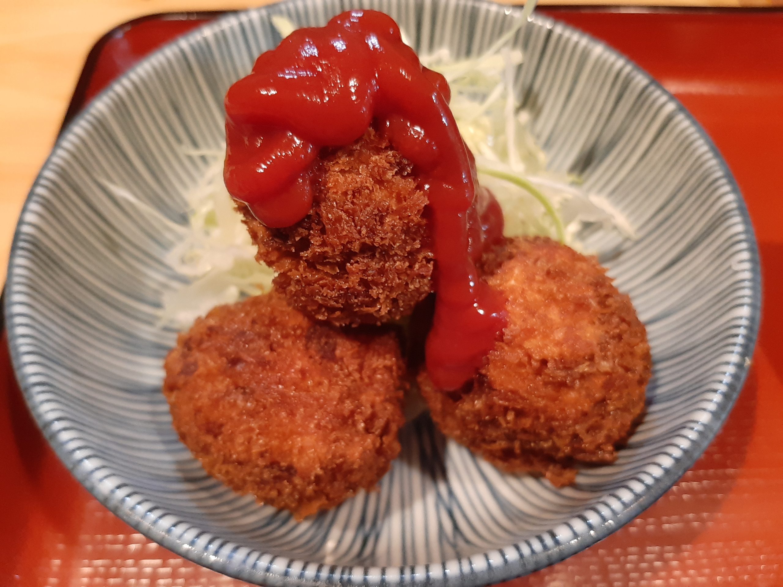 4品目は、ミートボールのフライでした。ケチャップで食べると美味しいです。