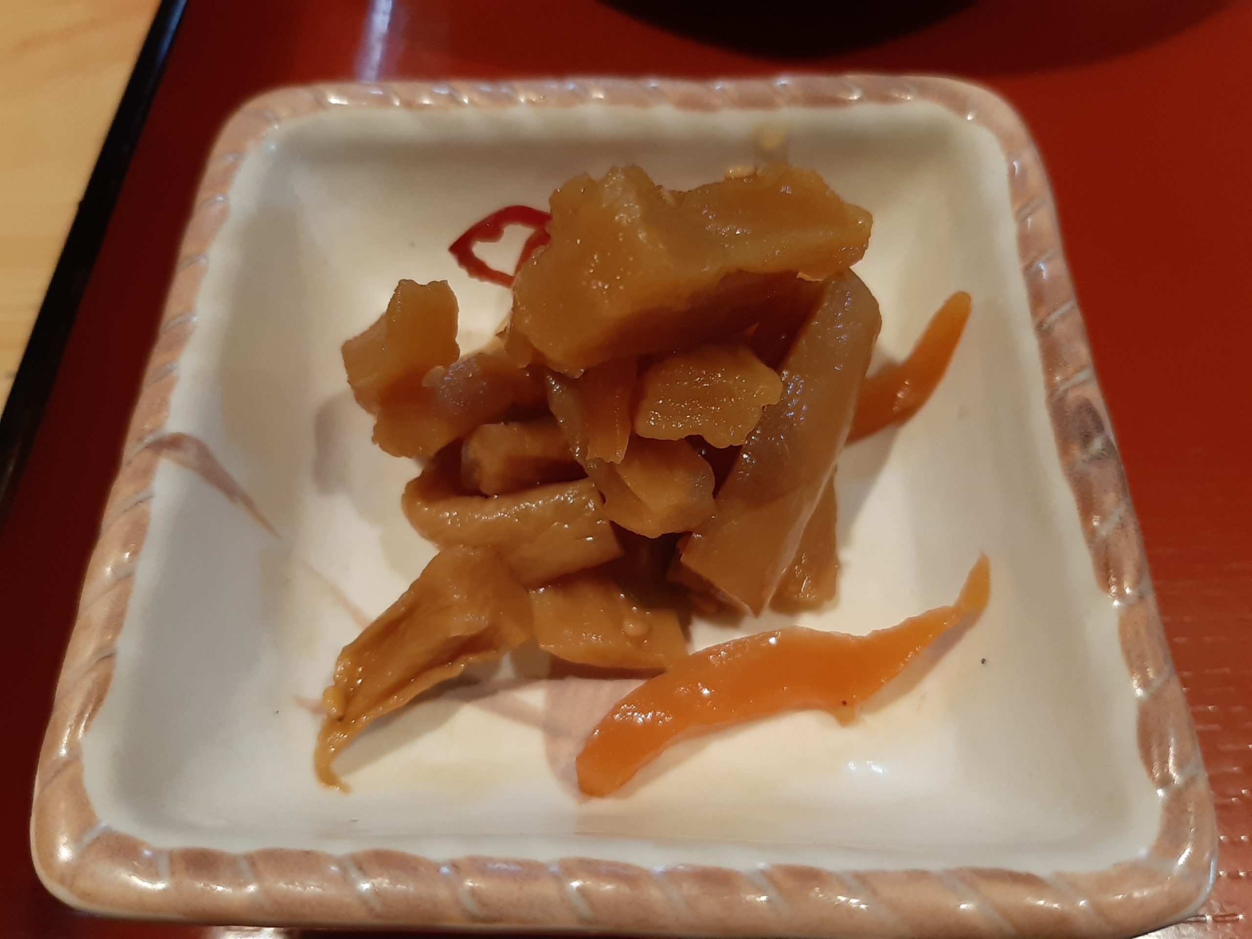 5品目は、大根の漬物です。自家製かは分かりませんが、良い味付けで美味しいです。