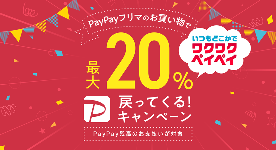 | PayPayフリマで最大20%戻ってくるキャンペーン | 2020.3.4~3.31 | 公式ページ |