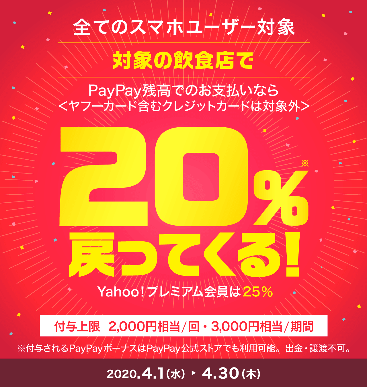 | まちかどPayPay第3弾 | 2020.4.1~4.30 | 公式ページ |