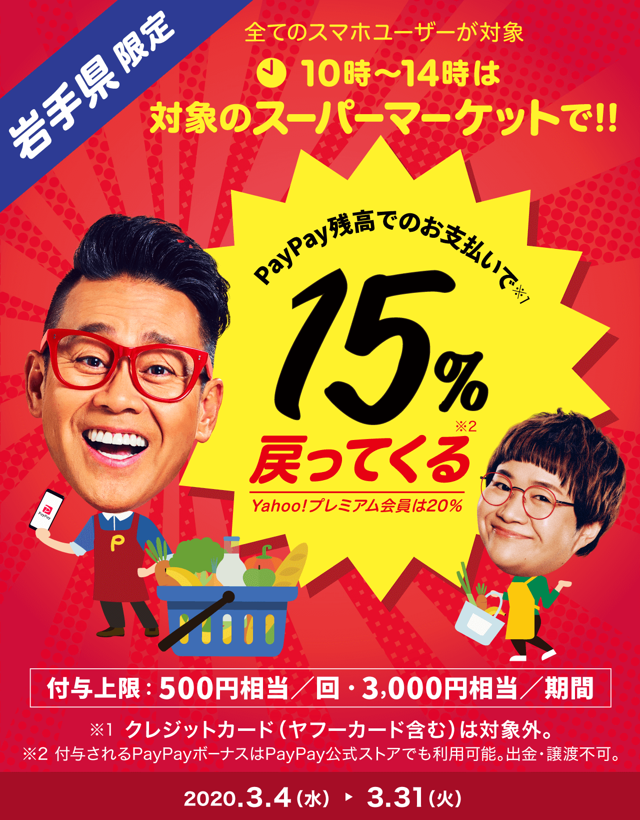 「春のスーパーマーケット大還元祭」は5%還元されるのですが、岩手県限定で還元率が15%に設定されている。ソフトバンク/ワイモバイルのスマホユーザーと「Yahoo!プレミアム会員」は、さらに高い20%還元。ポイント還元事業の5%対象店舗なら、最大25%還元になる。「イトーヨーカドー(花巻店)」や「紫波マルシェ」などが対象になっている。何故岩手県だけが特別なのか分かりませんが、超お得のようですので、ぜひ利用した方が良いですね。