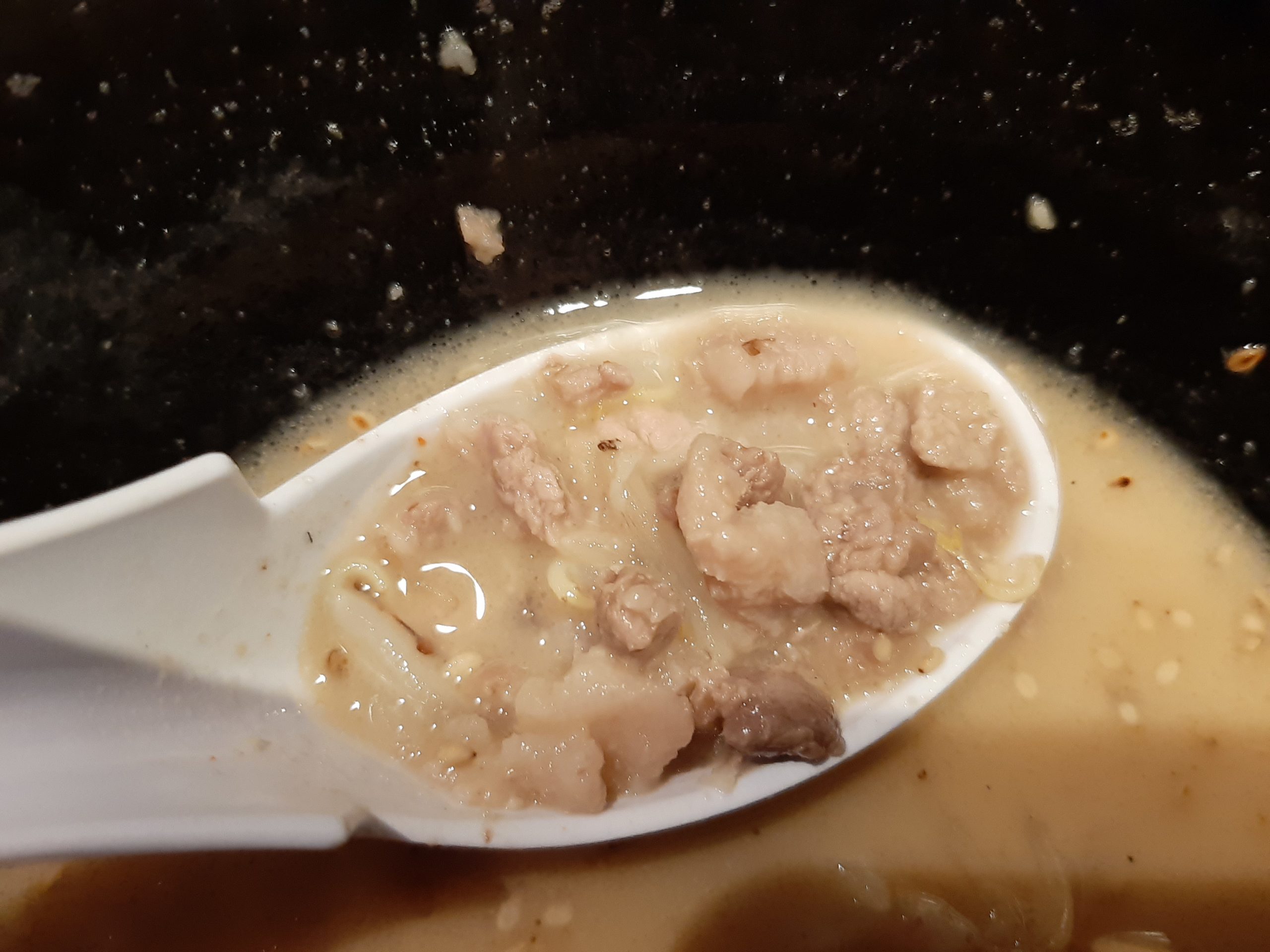そして何と言っても凄いのは、豚ひき肉?というか豚肉の小さいブロックがこんなに?という位、たっぷり入っていることでした。これは食べ応えがありますね。
