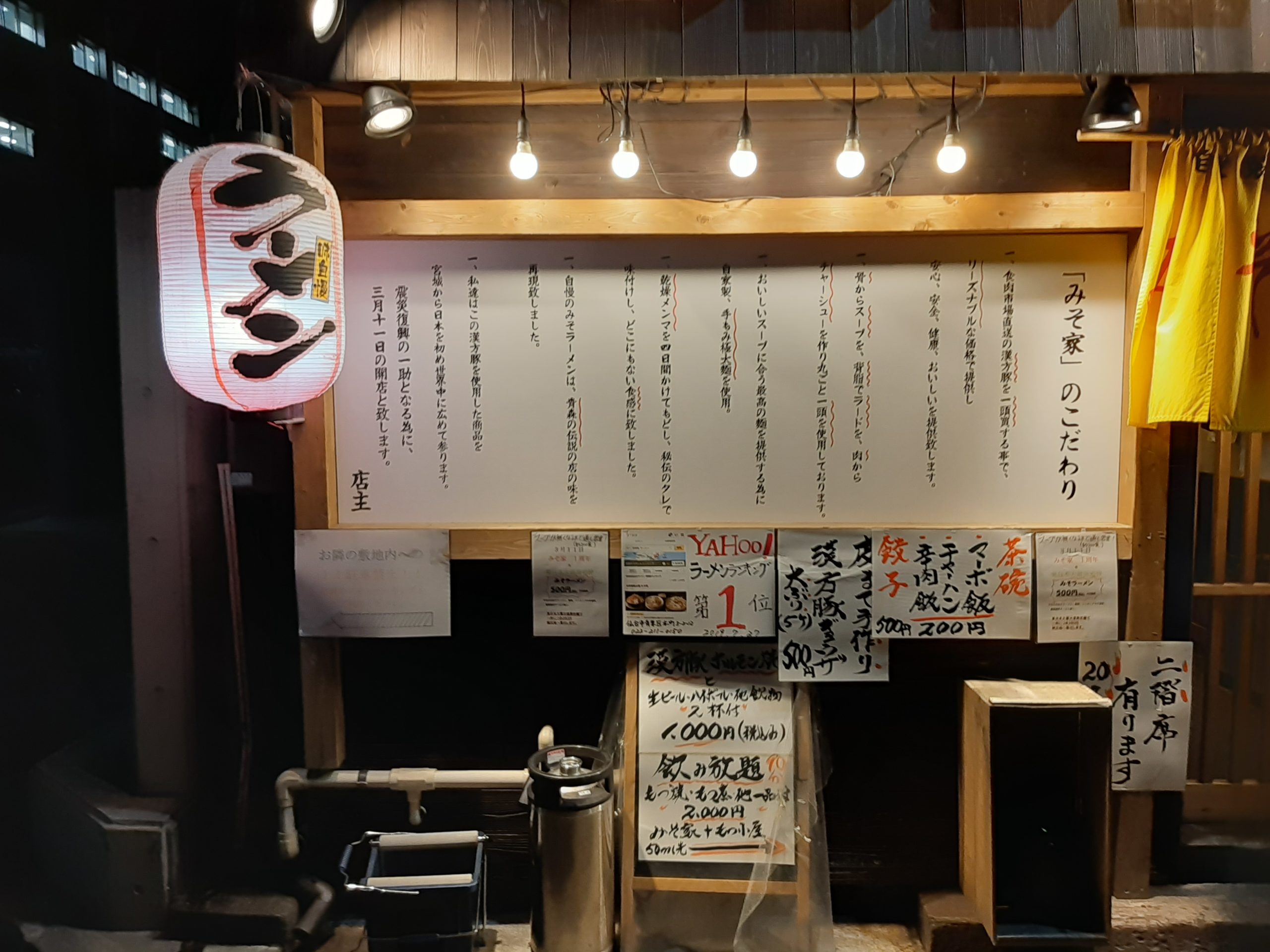 • 青森から伝説の『みそラーメン』を持って仙台に初出店。昼は自慢の『みそラーメン』を始め、正油、ワンタンメンなどを揃えたラーメン店として営業しています。、夜はとして営業。