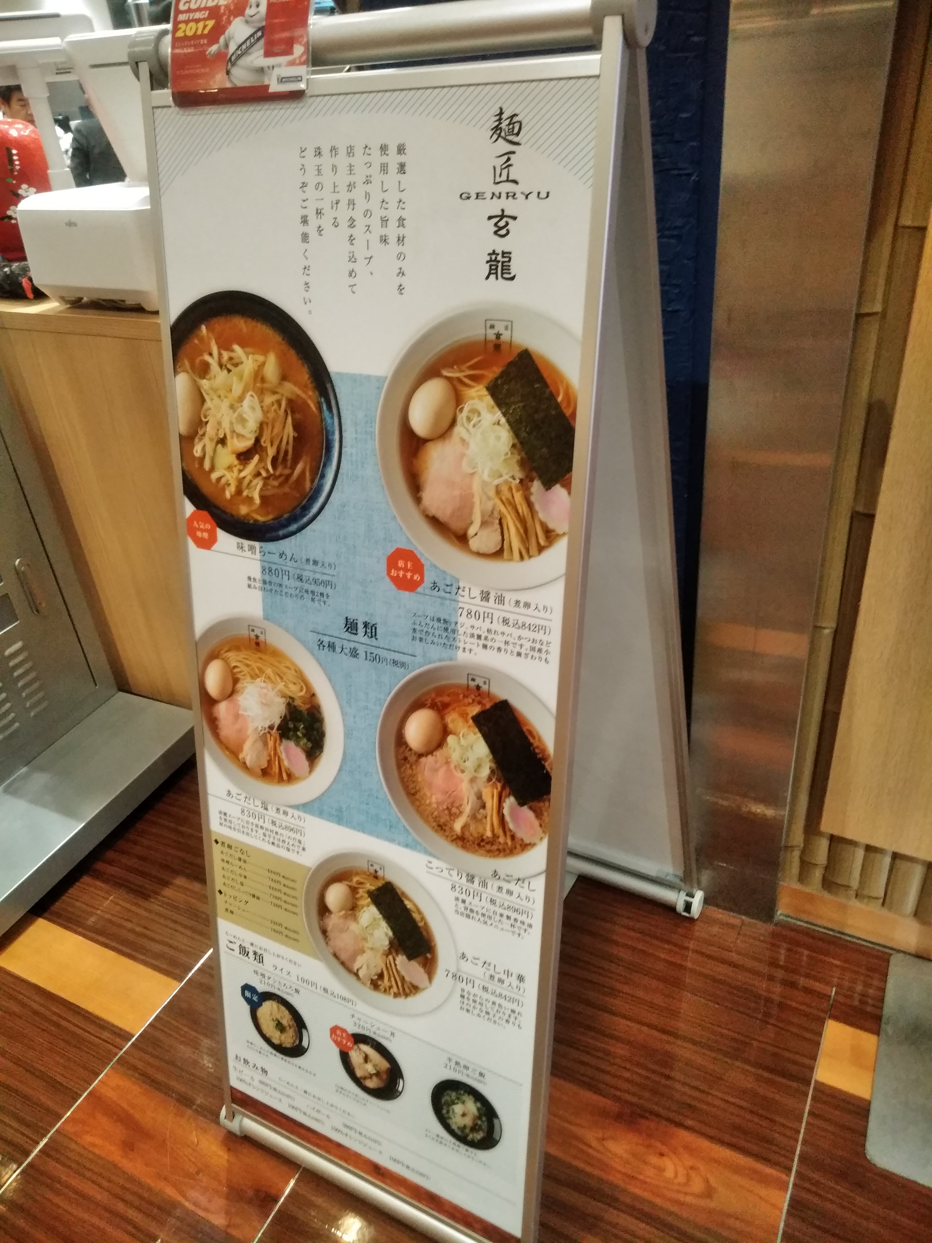 あごだし醤油と味噌らーめんが、人気の玄龍です。