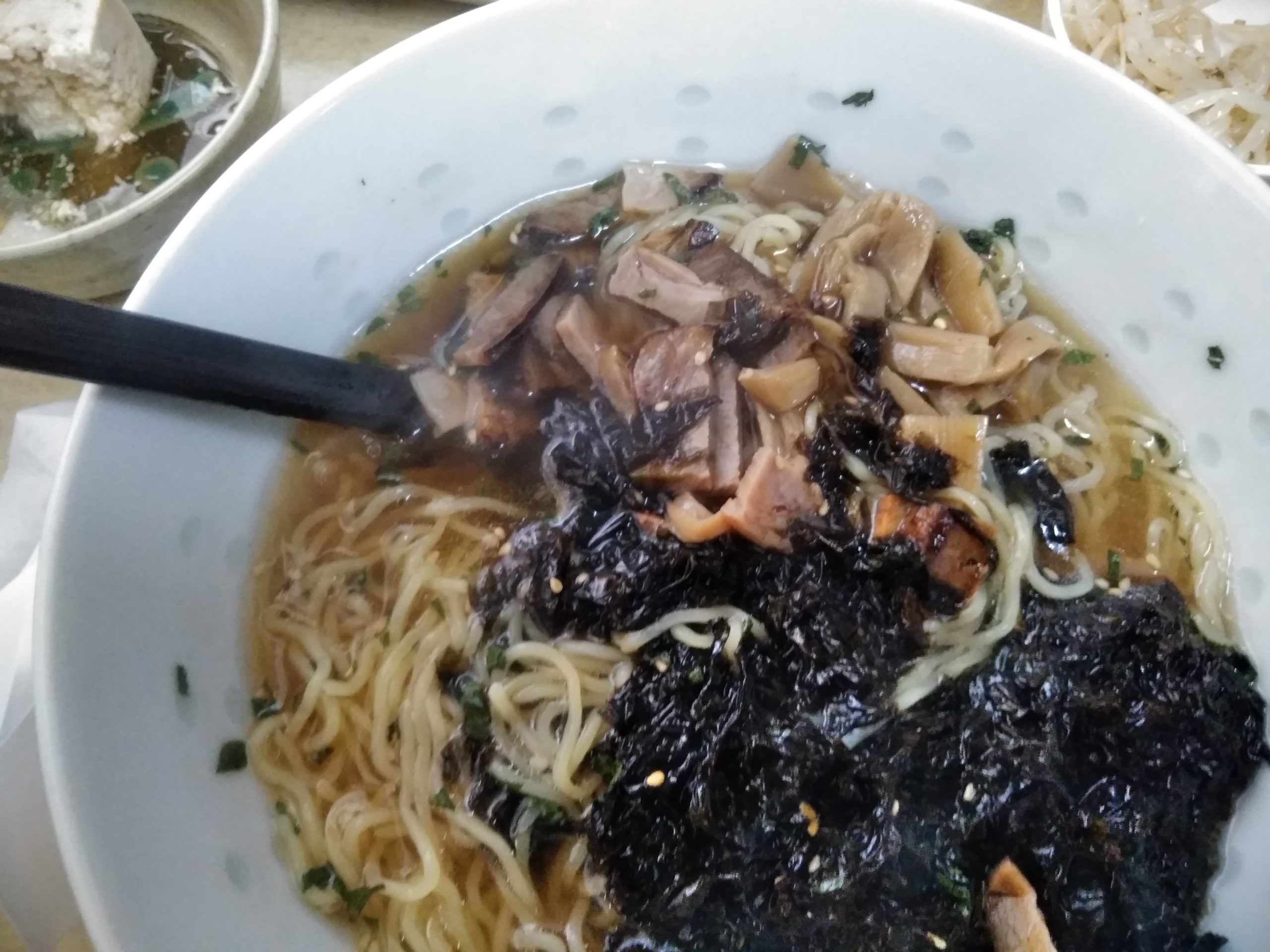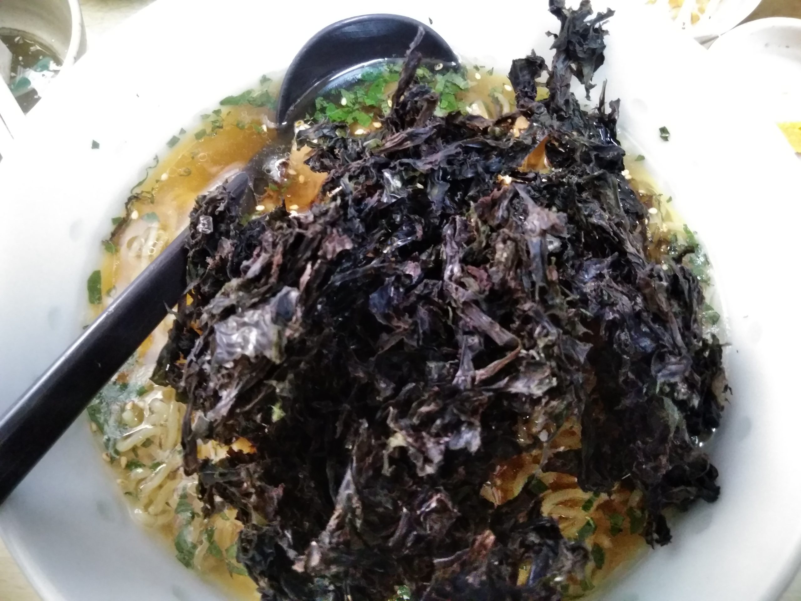 「塩ラーメン茶漬」の食べ方ですが、まずは普通にラーメンを食べるのですが、ママさんが岩海苔を載せてくれました。それも好きなだけ載せてくれるんですが、こんな半端ない量になりました。