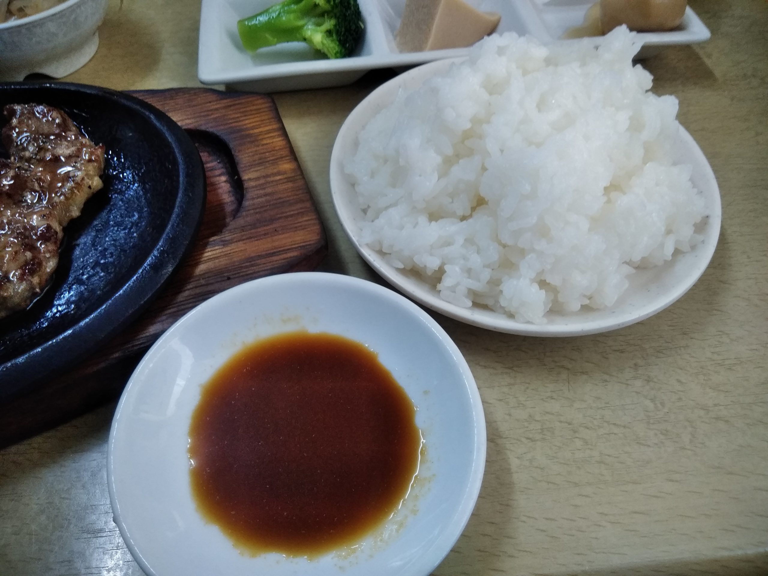 ステーキはタレに付けていただきますが、肉も柔らかくて美味しいですね。