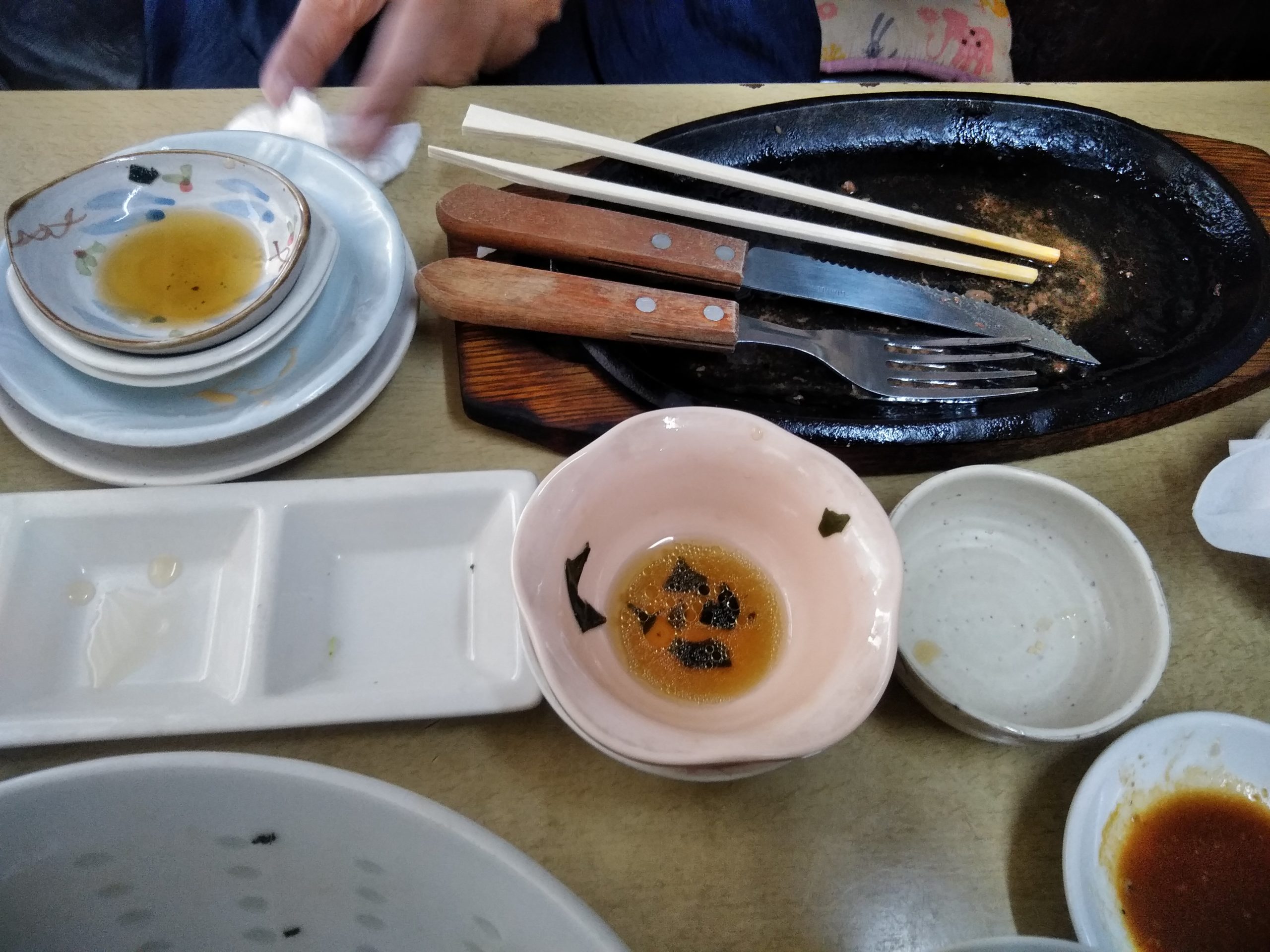 かみさんは、一番人気の「ステーキ定食」を注文しました。そうしたら、ママさんが小鉢が12品付きますと言って、次々におかずが出てきました。テーブルに載らないほどの凄いボリュームです。女性は食べきれない量かも知れませんね。しかも、どの料理も味付けが普通と違って美味しいんです。元フレンチシェフとして、何か隠し味があるのですかね?また、訪問したのは、2019年9月でした。10月から消費税が上がるのですが、お客さんから、値上げをしないで欲しいとの要望があるので、値上げはせずに、小鉢の品数を減らして対応するといってました。2023年1月現在は、小鉢9品に減らして、値段はそのままで提供しているようです。