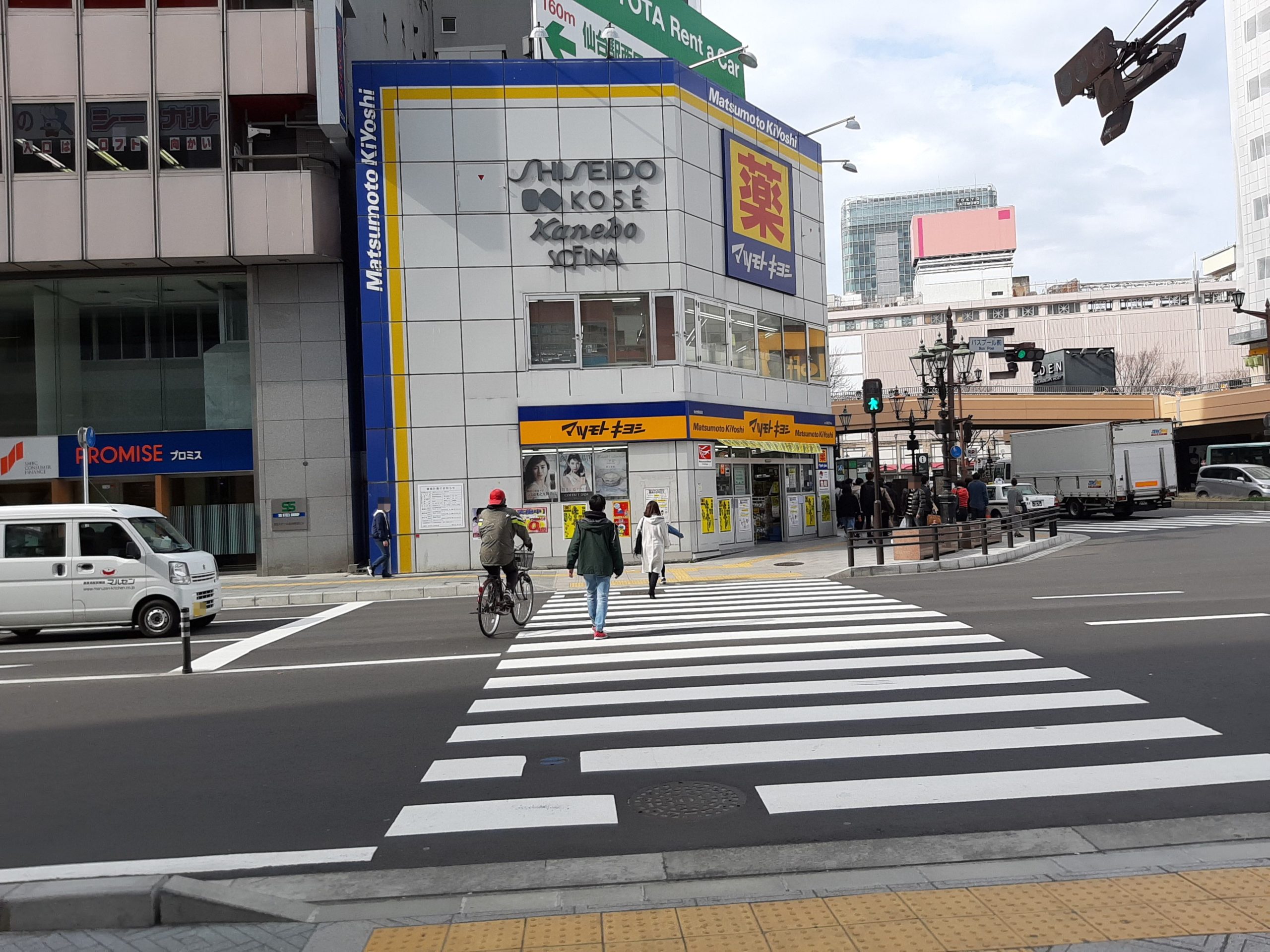 マツモトキヨシ仙台駅前店は南町通と東五番丁通りの角にあります。