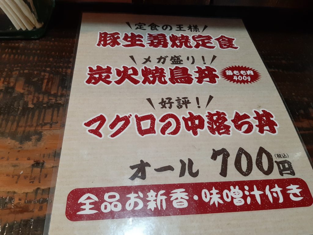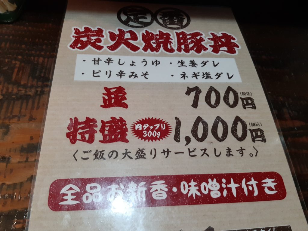 炭焼き豚丼は特盛(1000円)ができて、炭火焼鳥丼(700円)、豚生姜焼き定食(700円)のメニューも増えていました。しかしながら、人気は炭焼き豚丼(並)とマグロの中落ち丼のようです。まだ行ったことがない人はぜひ行ってみてください。ただし、かなり混雑しているので、12:00~13:00を外した方が良いと思います。