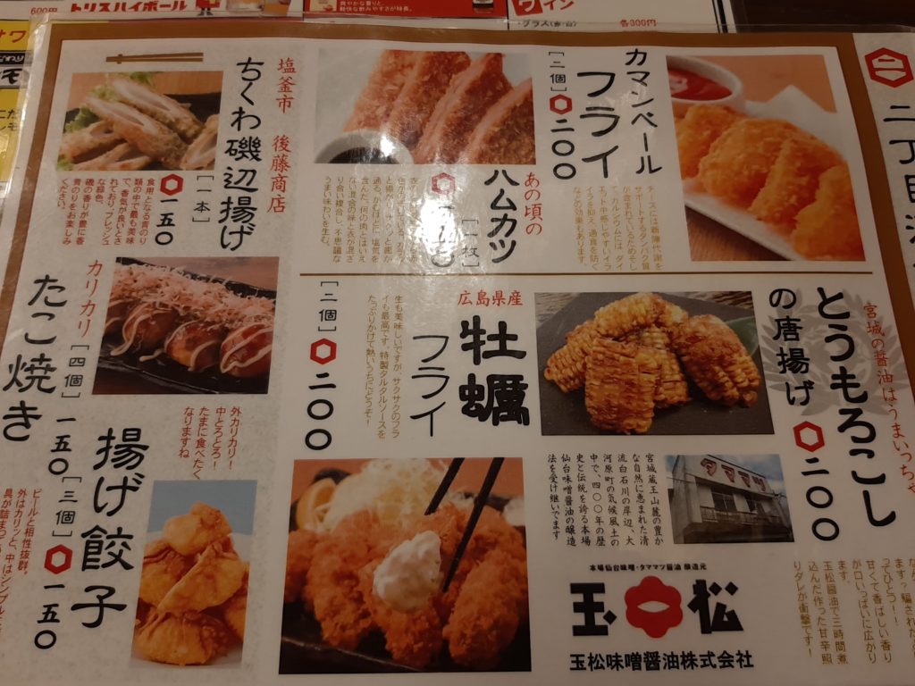 ちくわ磯部揚げ(150円)を注文。メニュー表ではすごいボリュームがあるようでしたが、実際はこんなものでした。150円ですからしょうがないですね。普通に美味しかったです。