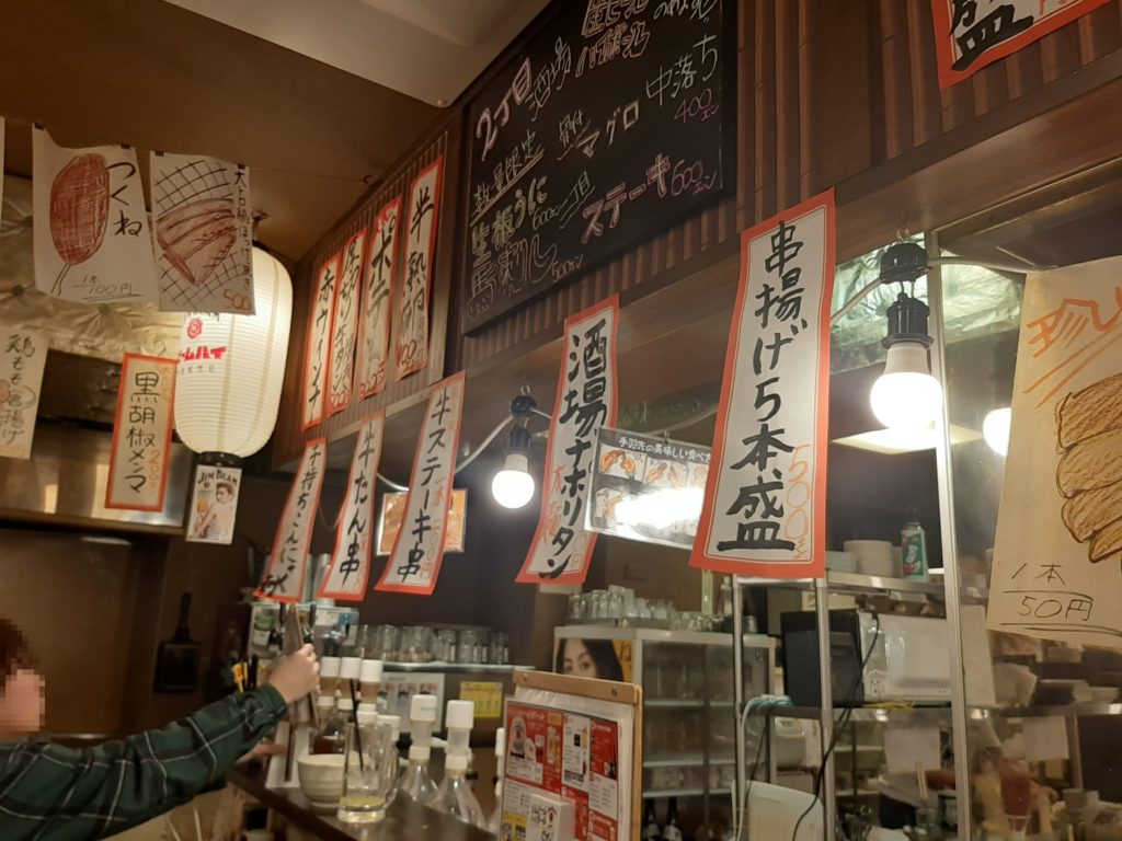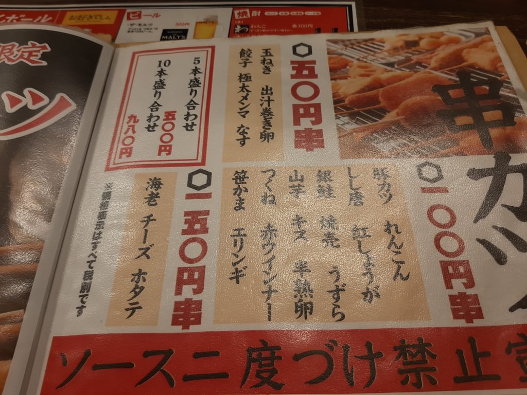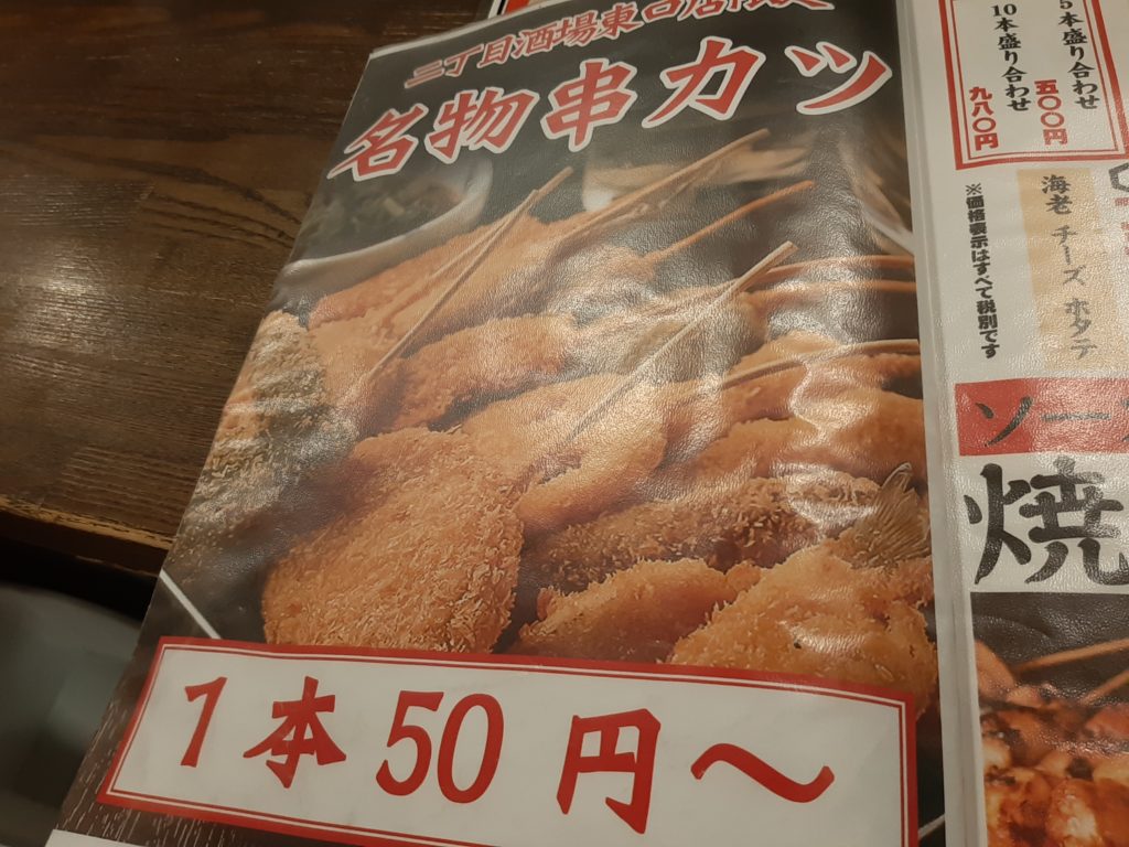 東口店限定のようですが、名物串カツが1本50円~注文できます。