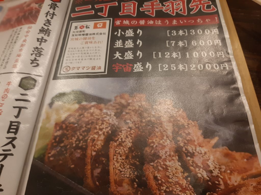二丁目酒場は、総本店、虎屋横丁店、東口店、しゃぶ屋総本店と仙台市内に4店舗を展開しています。海鮮料理、牛タンなどの肉料理、名物の手羽先唐揚げの美味しい料理をリーズナブルに提供している居酒屋です。