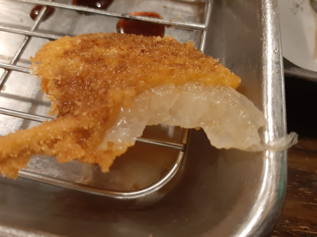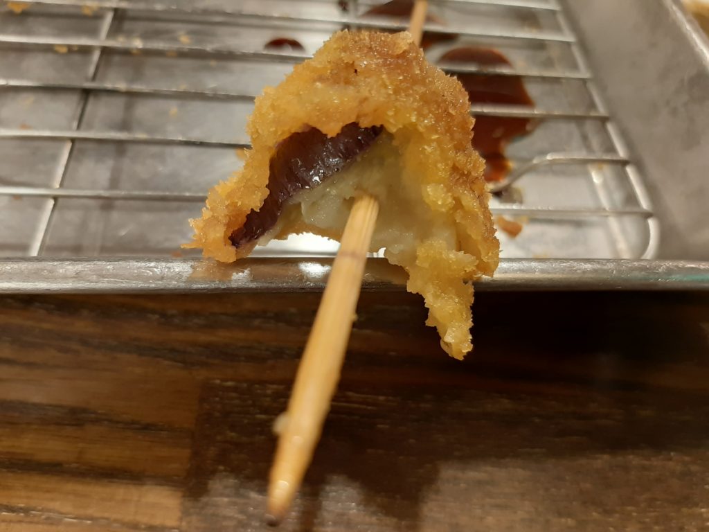 なすの串カツです。普通に美味しいです。それにしてもリーズナブルです。