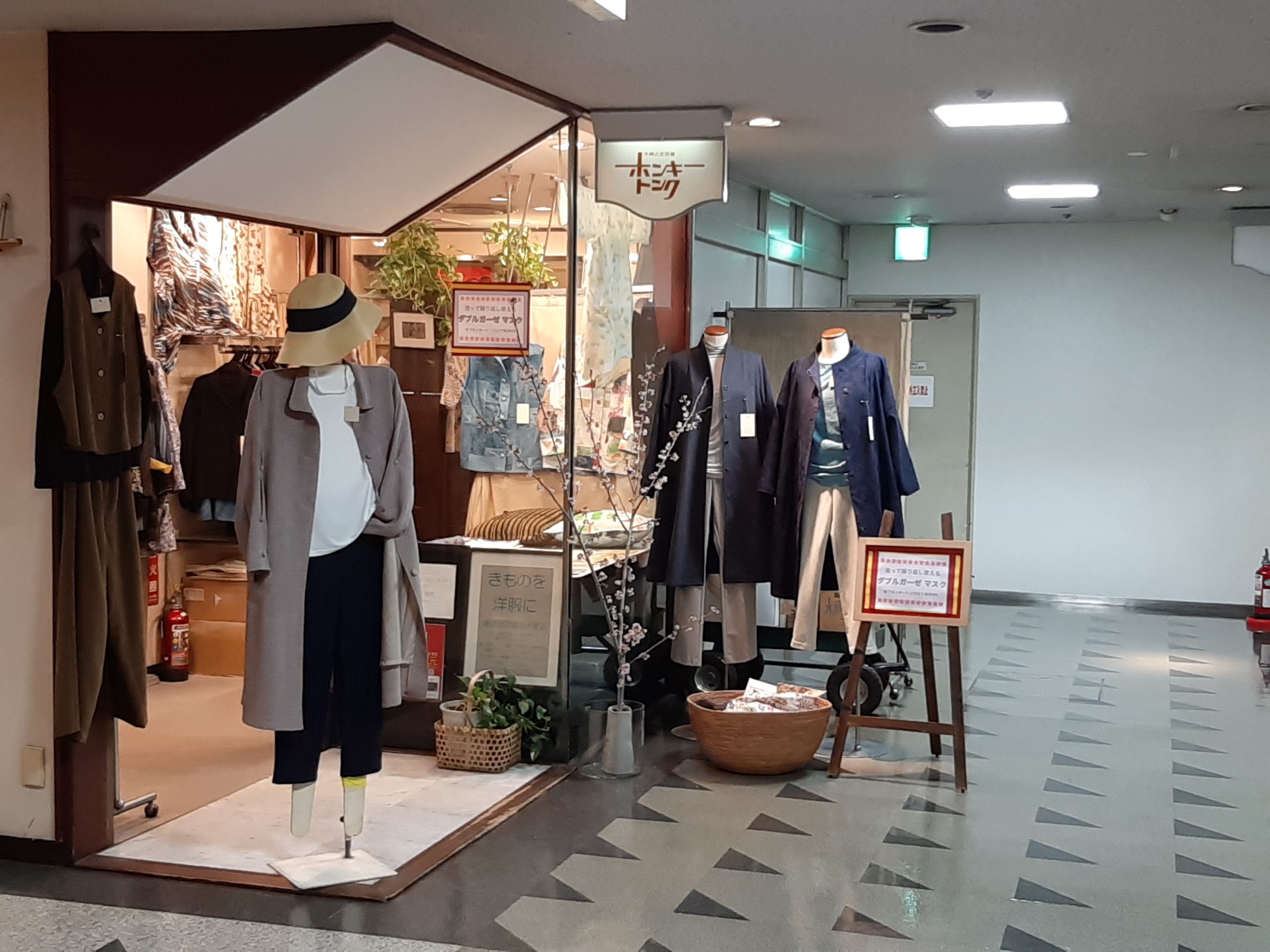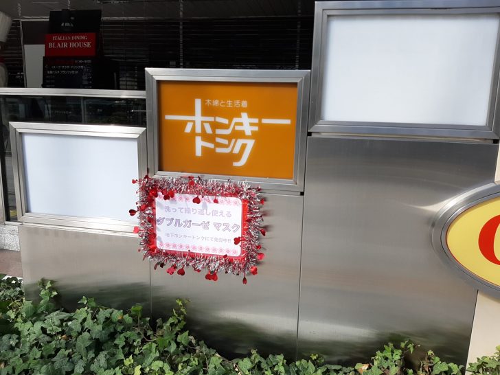 毎日マスクが買えるお店は、どこにあるかというと、国分町に近く仙台市青葉区一番町4丁目にある仙台三越の隣にある、SS仙台ビル(旧小田急ビル)の地下商店街Oasisの中にありました。Oasisは飲食店がメインです。仙台牛の牛なべ・しゃぶしゃぶの『入間』やイタリアンの『ブレアハウス』、洋食の『アメリカングリル』などの人気店がテナントとして入っているのですが、ブティック?木綿と生活着の『ホンキートンク』というお店も入っています。この店で『ダブルガーゼマスク』を扱っているのです。