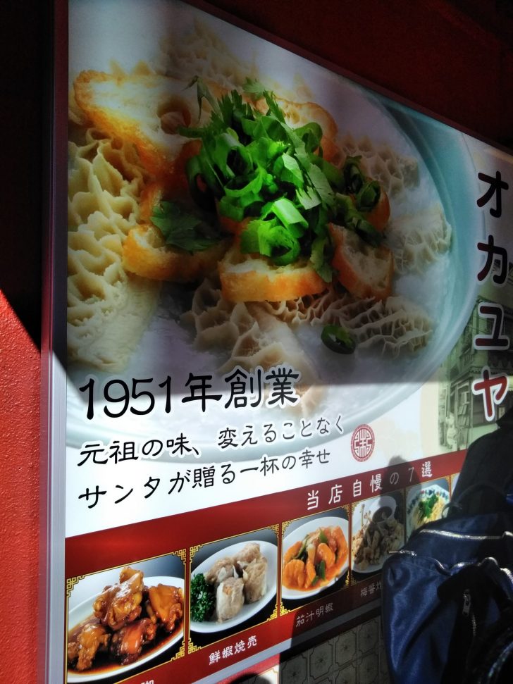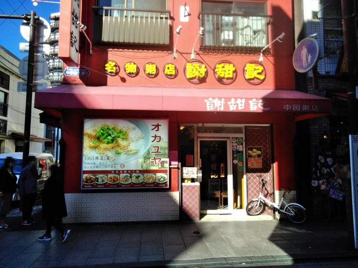 中華街大通りにある謝甜記は、1951年創業で、先代謝甜(シャテン)の味を守っています。謝甜記のお粥は、生の米から乾燥カキ・乾燥貝柱・鳥一羽丸のまま入れ約4時間煮込み、塩は「セル マラン ド ゲランド」と言うフランス原産の物を使用しております。おかゆの具は全部で15種類。お好みで「油条」「薬味」「醤油」などを入れて味の変化を楽しむことも出来ます。