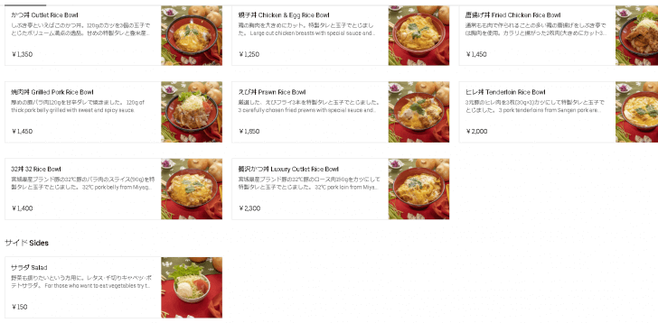 メニューとしては、苦竹店と異なり、麺類と定食は無しで、丼ものに絞ったものになっていました。