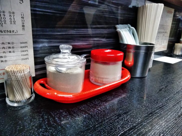 平日の開店前でもこの行列です。休日は、この2倍以上の行列ができます。すごい人気ですね。開店前のお店の方は、並ぶ位置を修正するやら、事前に注文を聞いたりと手慣れた感じでした。なので、開店時間には、並んだ順番に左右のカウンターに案内されます。そうすると、お冷、注文伝票などが既に席に用意してあります。後はラーメンが来るのを待つだけですが、着席後7分程度で着丼しました。早いですね。