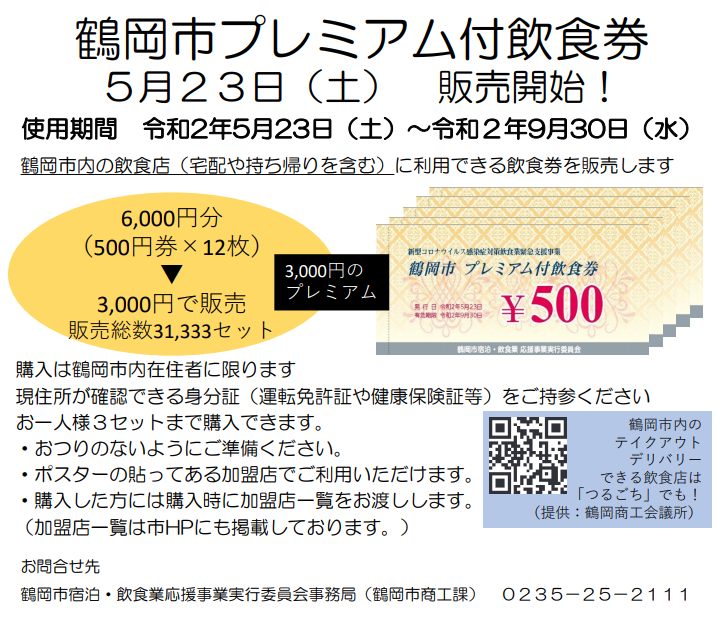 鶴岡市プレミアム付き飲食券