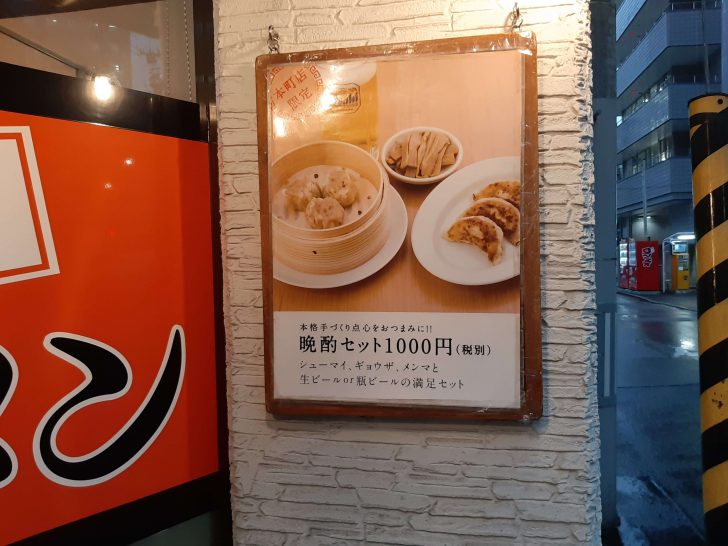 本町店限定の晩酌セット1,000円の看板がお店の外に掲げられていました。