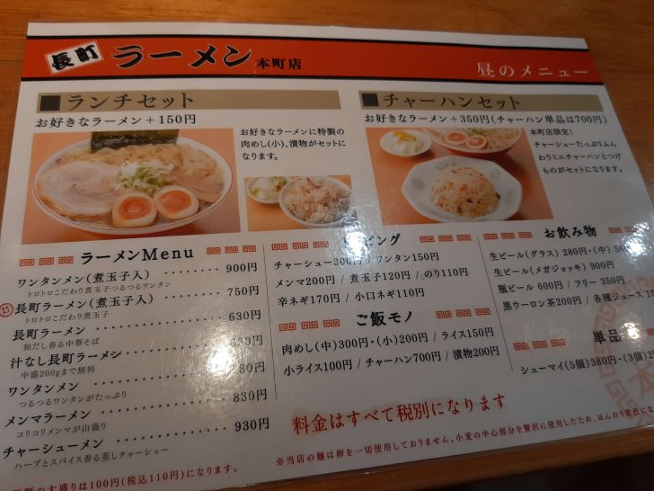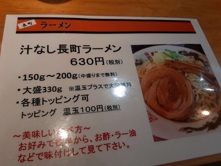 汁なし長町ラーメンは本町店のみしか提供されないようです。