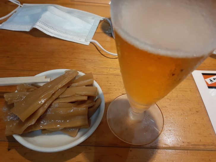 おつまみの一品目のメンマが提供されました。結構盛りが良いです。食感も良くて美味しいですね。