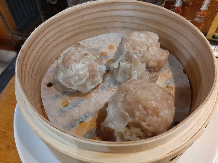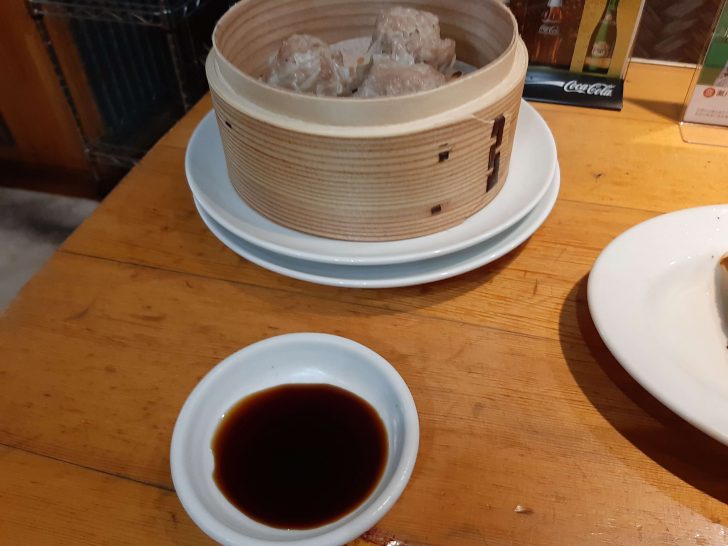 三品目はシューマイです。蒸したてで提供された肉シューマイは、肉がたっぷり入っており、熱々でジューシーで美味しかったです。この晩酌セットのおつまみは最高ですね。つまみの量が多すぎて飲み物もビール1本では当然足りないですね。