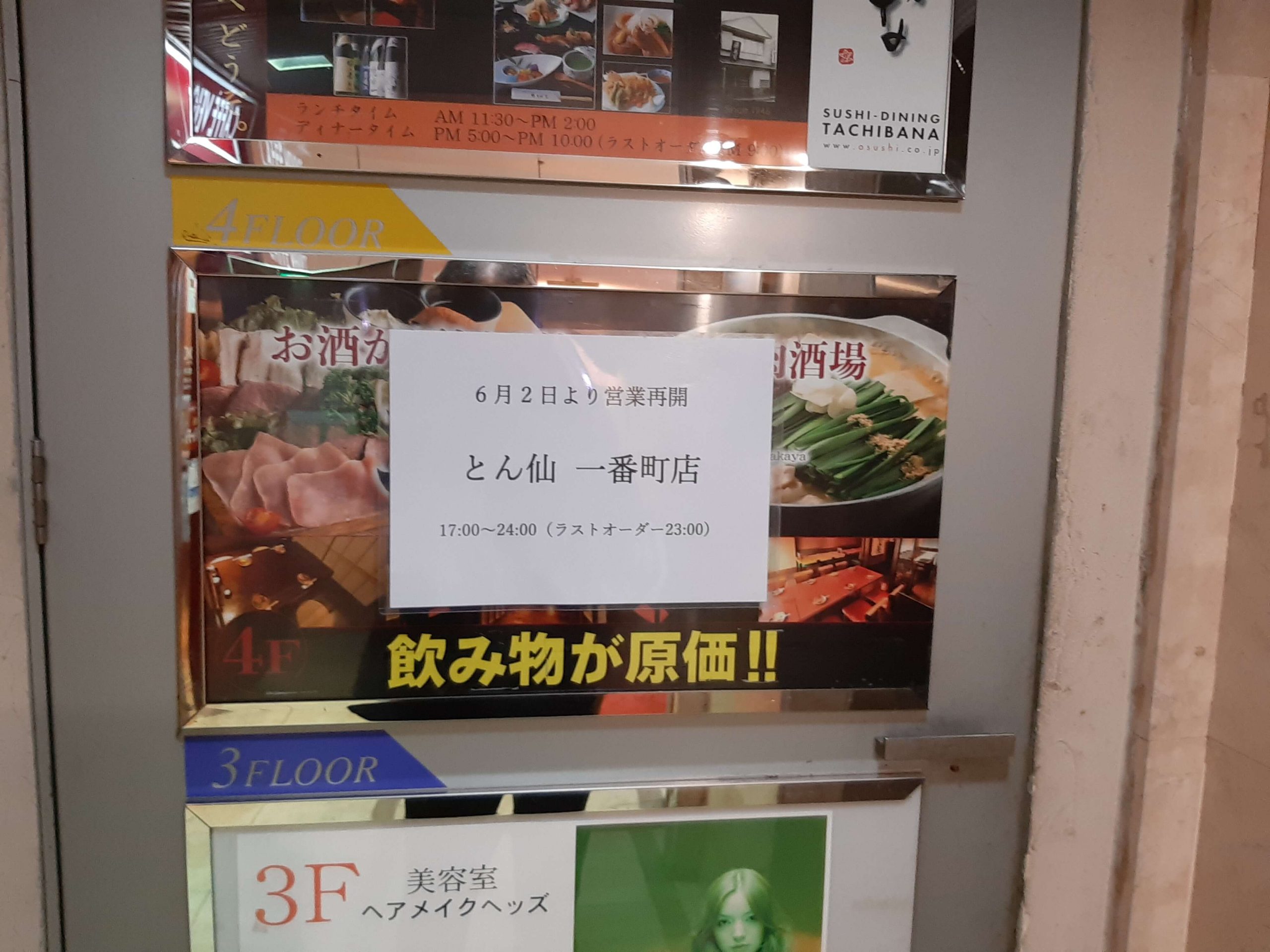 お酒がほぼ原価で飲める居酒屋?とん仙国分町店は、『とん仙一番町店』として6月2日より、移転オープンしたようです。宴会としての利用、ちょい呑みとしての利用はどうなのか、リポートしたいと思います。