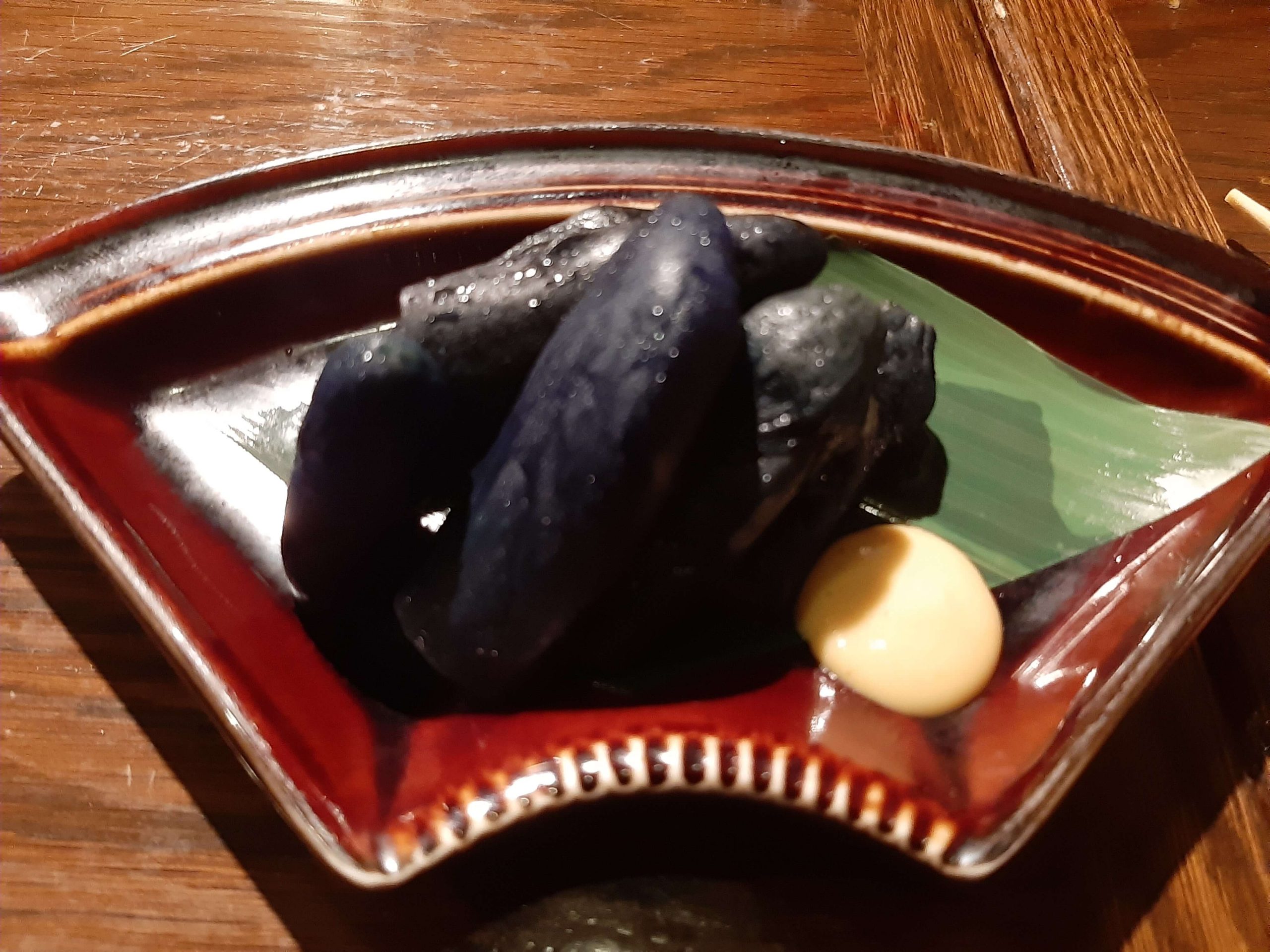 まずは、すぐ提供されるおつまみとして、仙台長茄子漬け(280円)を注文しました。仙台長茄子漬けは、美味しくて量も多いのでお得ですね。