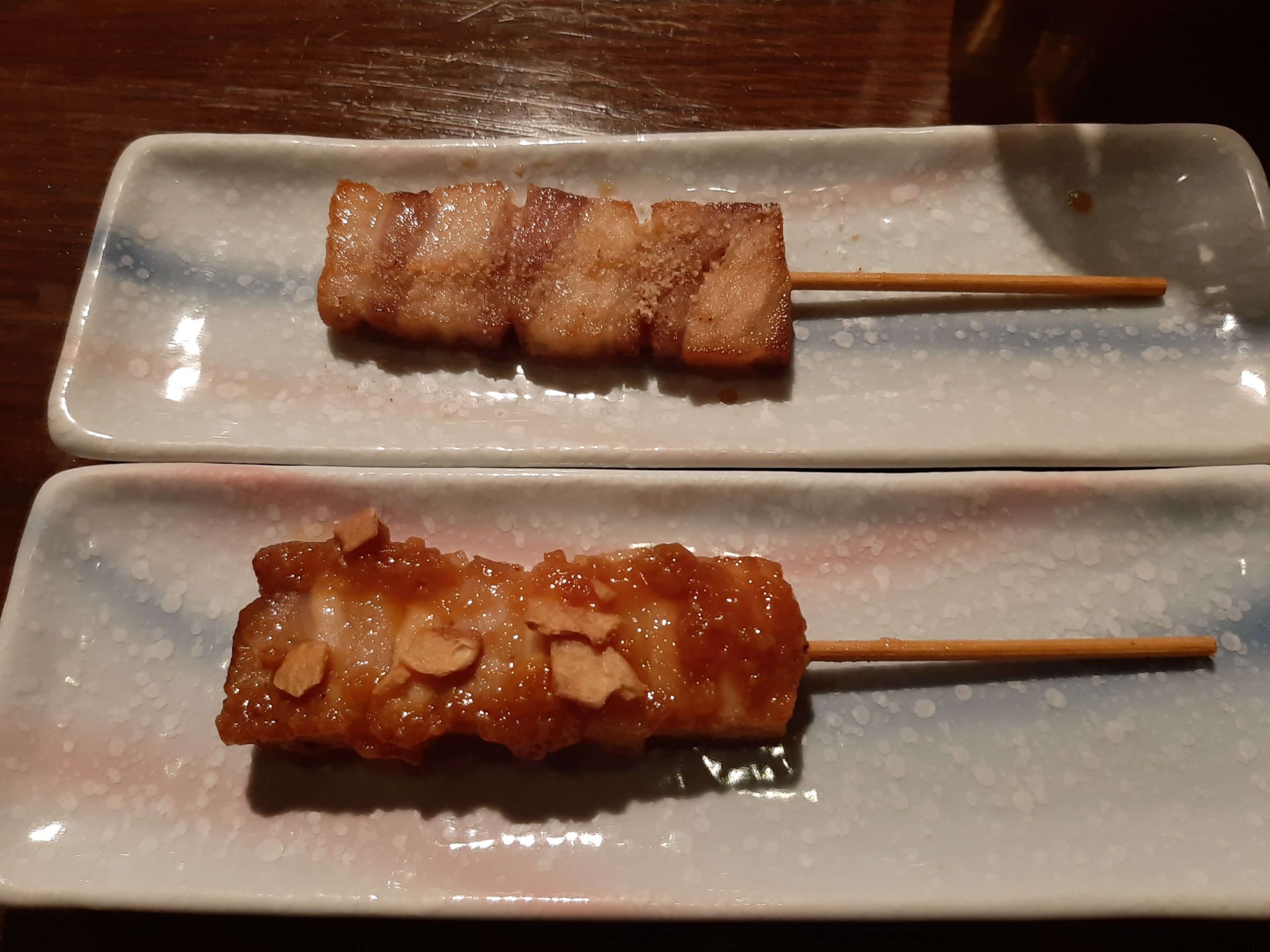 『とん仙一番町店』名物の仙台伊達豚串は、(白)90円と(赤)100円があります。自家製のブレンドたれが抜群の旨味を引き出して、やみつきになること間違いなしですね。