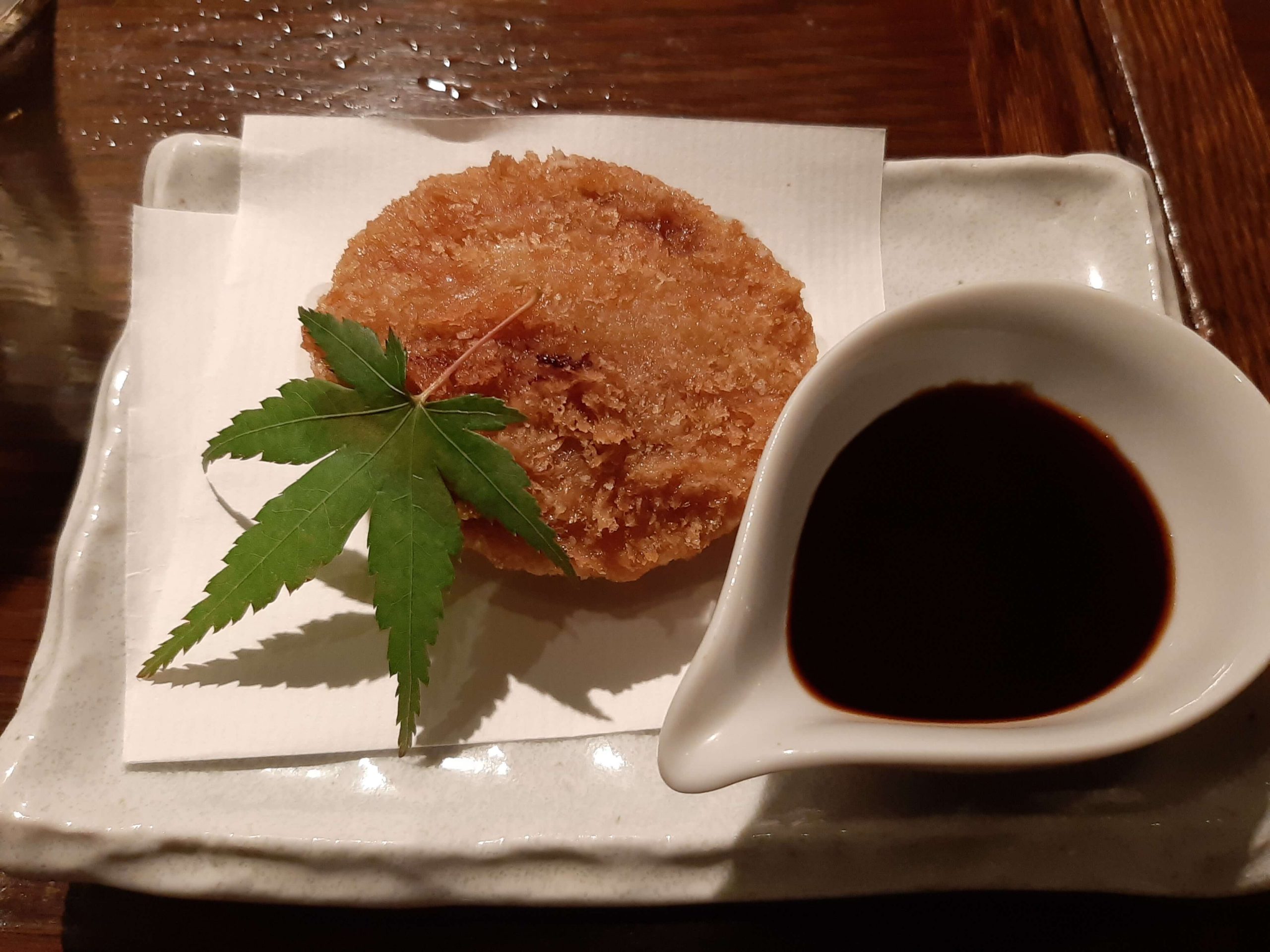 これもお店の名物?の牛タンメンチカツ(200円)が安いので注文してみました。揚げ物なので提供まで少し時間が掛かりますが、専用のソースも付いてきて、揚げたて熱々で肉と肉汁が美味しいです。コスパ抜群です。