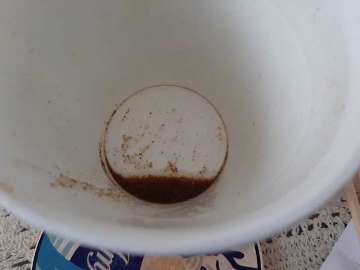 カップの底には煮干し粉がこんなに残っていました。これを見ても煮干し粉がたっぷり入っていることが分かりますよね。
