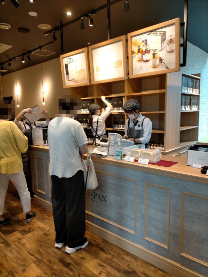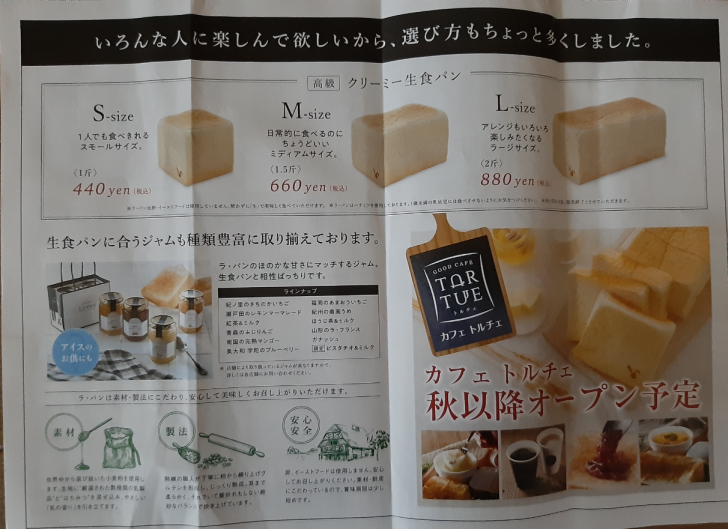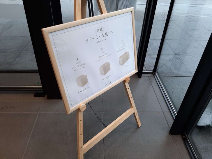 通常高級食パン店の新規開店直後の場合は、購入個数が制限されている場合が多いですが、LAPAN仙台本店では、購入個数制限がありません。これは、ここに買いに来られない人にも食べて貰いたいという配慮とのことです。なので、今回は息子夫妻、娘夫妻、知人ようにS3個購入、自宅用にM1個購入しました。Lサイズは早々と売切れていました。