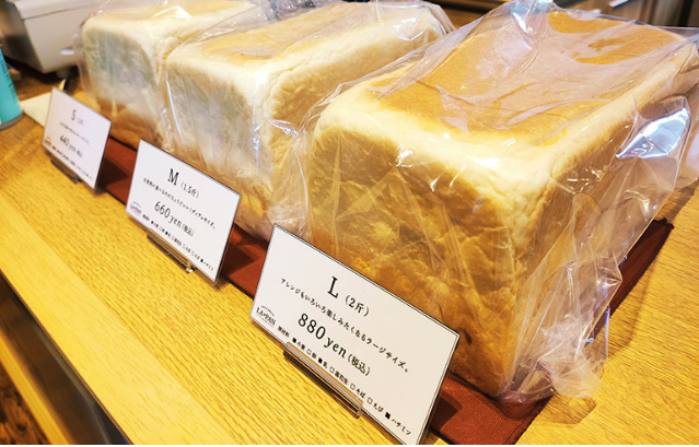 高級クリーミー生食パンは、次のように3種類あります。自分の好きなサイズを選べるのは嬉しいですね。他の高級食パン店では、2斤のみしか販売していないところも多いですからね。