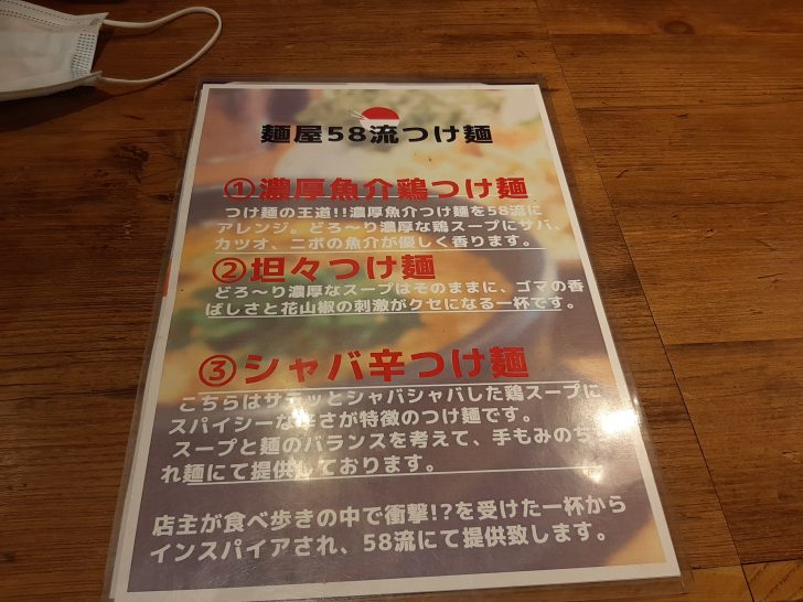 以前から行ってみたかった麺屋58(ゴッパチ)にやっと行けました。予想以上に美味しかったので紹介したいと思います。
