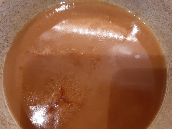 卓上調味料は一味唐辛子とフルーツ酢のみですね。それから割りスープのポットも置いてあります。