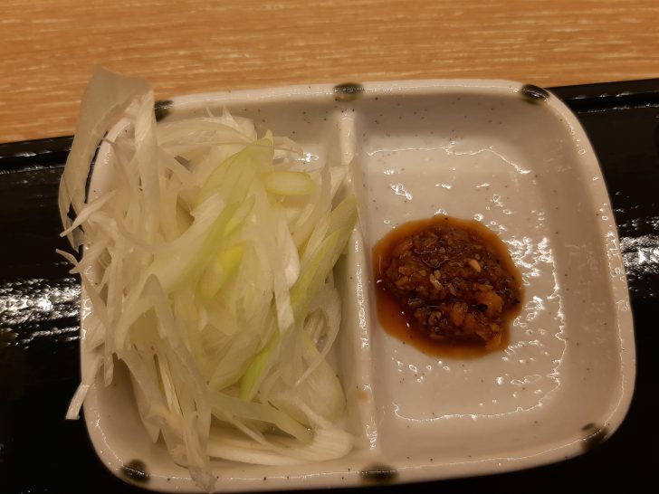 もうひとつの別皿として、ネギとニンニク醤油が提供されます。