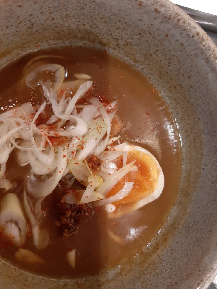 途中で味変してみました。ネギ、ニンニク醤油、一味唐辛子、フルーツ酢を加えたら、また美味しいですね。