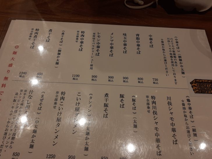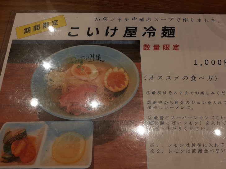『仙臺 自家製麺 こいけ屋』のメニュー