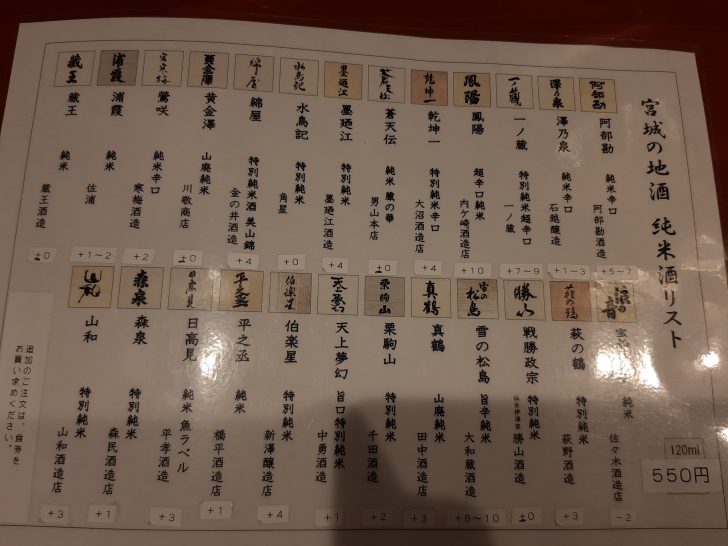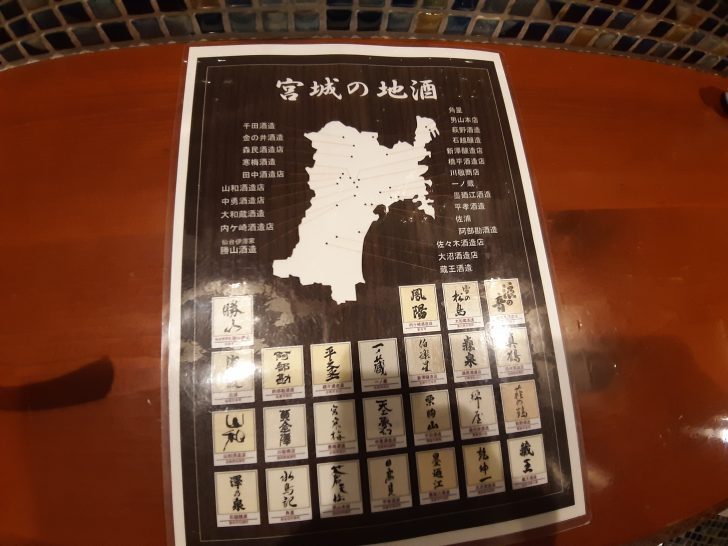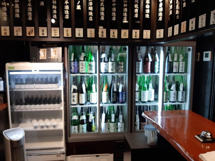 宮城の地酒が冷蔵庫にたくさん冷やしてあります。凄いですね。地酒が25種類も揃っているそうです。