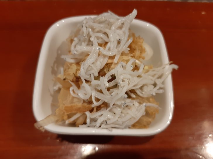 まず、おつまみは冷奴(しらすのせ)【150円】を頼みました。なかなか他では見ないですが、宮城で、しらすがとれるようになったから?このメニューを出しているのでしょうか?すごく旨いですね。