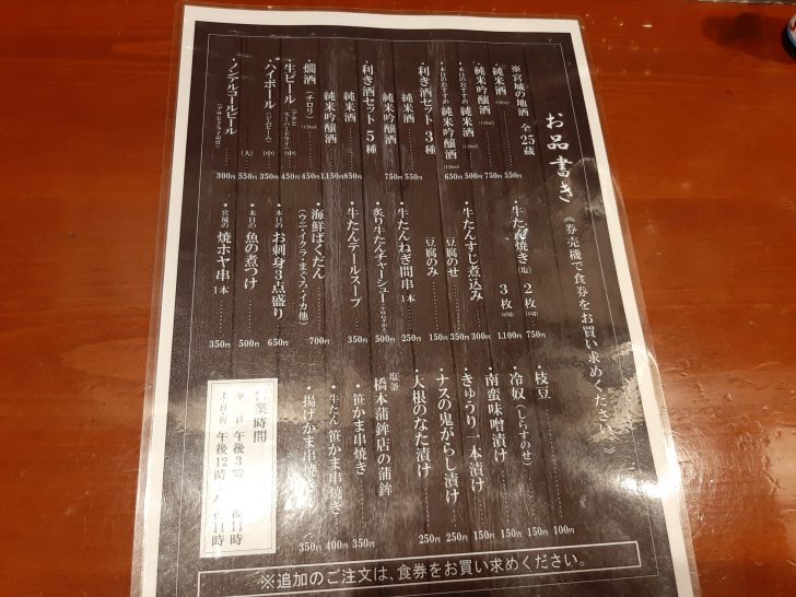 たんや善治郎 立呑み処の入口には券売機が2台(おつまみ用とドリンク用)設置されていて、これで好きなおつまみとドリンクを購入します。