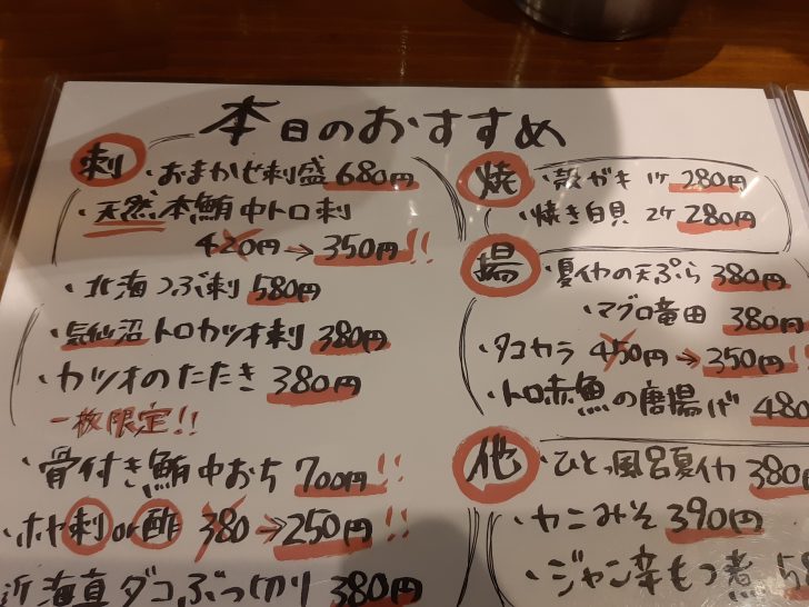さすがに、塩釜港直送の天然本鮪だけあって、中トロ刺がものすごく美味しかったです。本当にリーズナブルな値段で食べられるのは嬉しいですね。