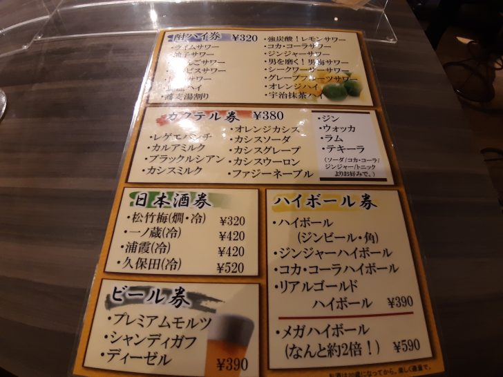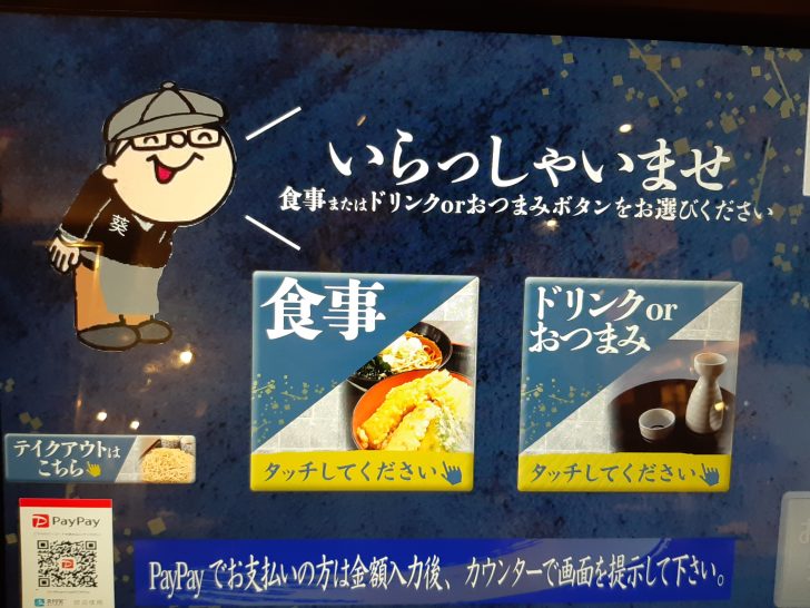 券売機で食券を購入します。食事とドリンク・おつまみが分かれています。