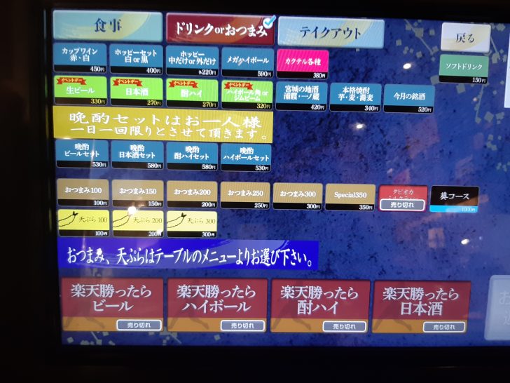 楽天イーグルスが勝ったらドリンクが割引されます。